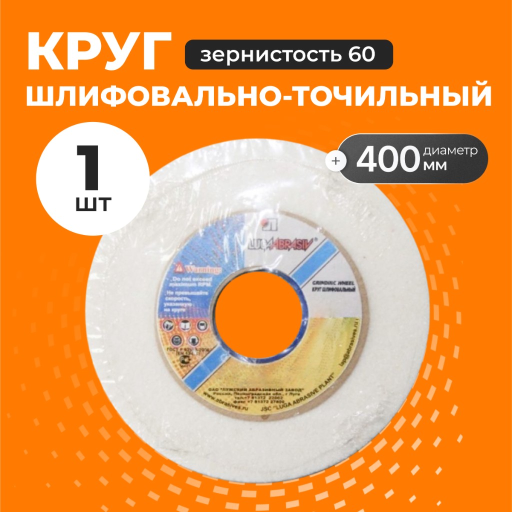 Круг шлифовально-точильный LugaAbrasiv, 25A, диаметр 400х40 мм, посадочный диаметр 127 мм, зернистость 60, белый, K,L 50 м/с V