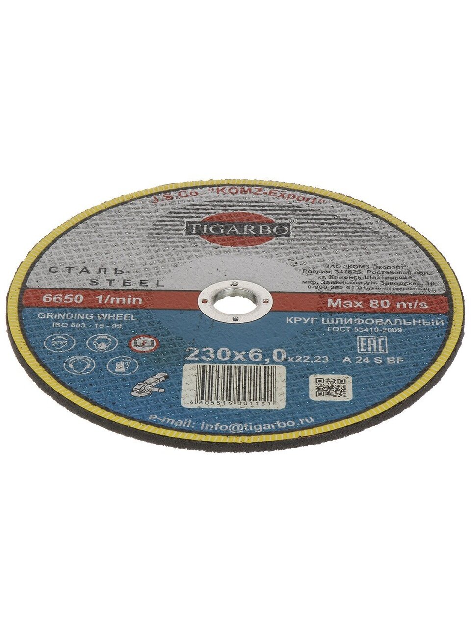 Вы можете приобрести «Круг зачистной Tigarbo, диаметр 230х6 мм, посадочный диаметр 22 мм, зернистость F24, 14А» и другие товары в нашем интернет-магазине в Обнинске по низким ценам и с бесплатным самовывозом.