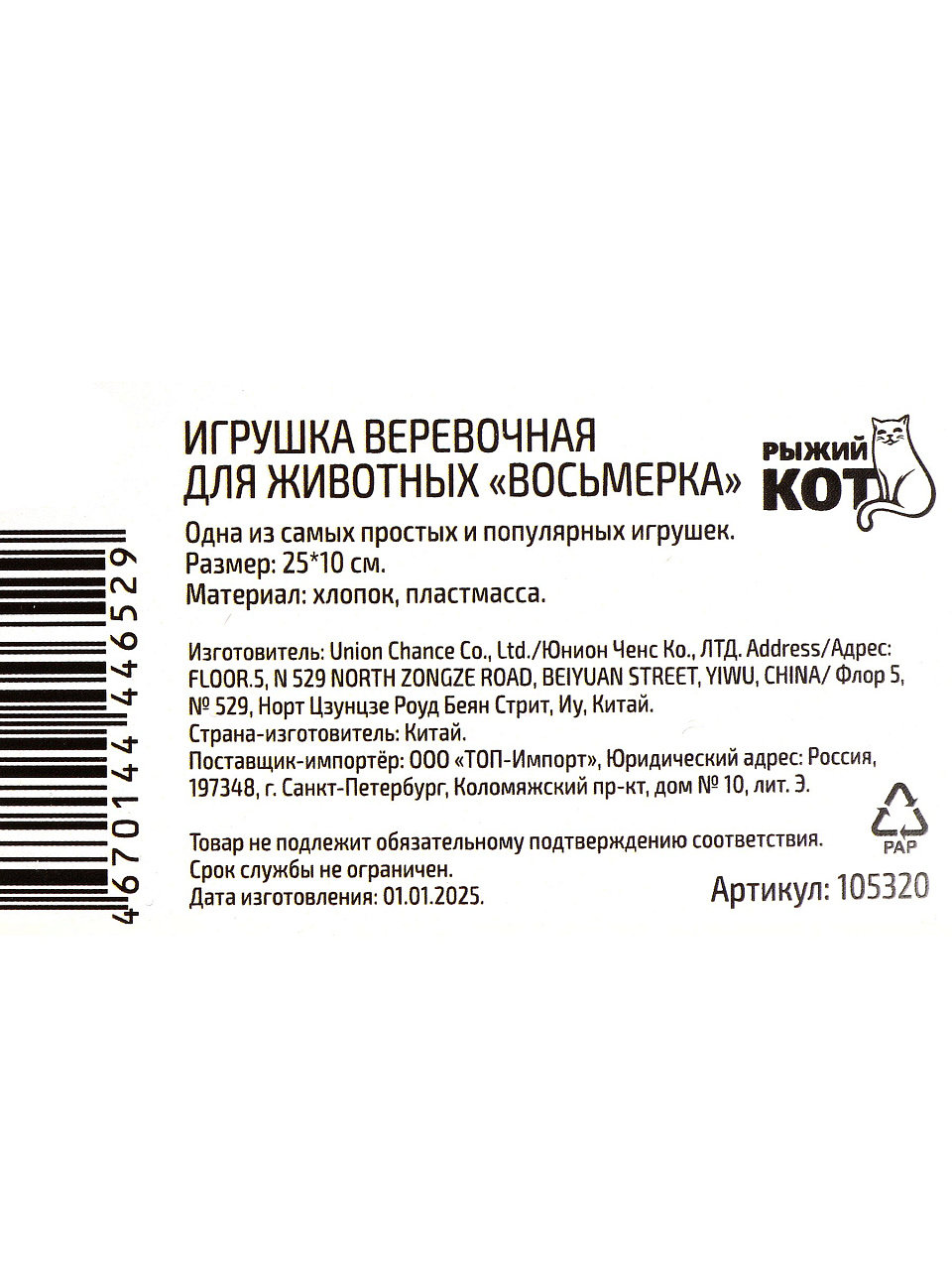 Вы можете приобрести «Игрушка для животных веревочная, Рыжий кот, Восьмерка» и другие товары в нашем интернет-магазине в Шахтах по низким ценам и с бесплатным самовывозом.