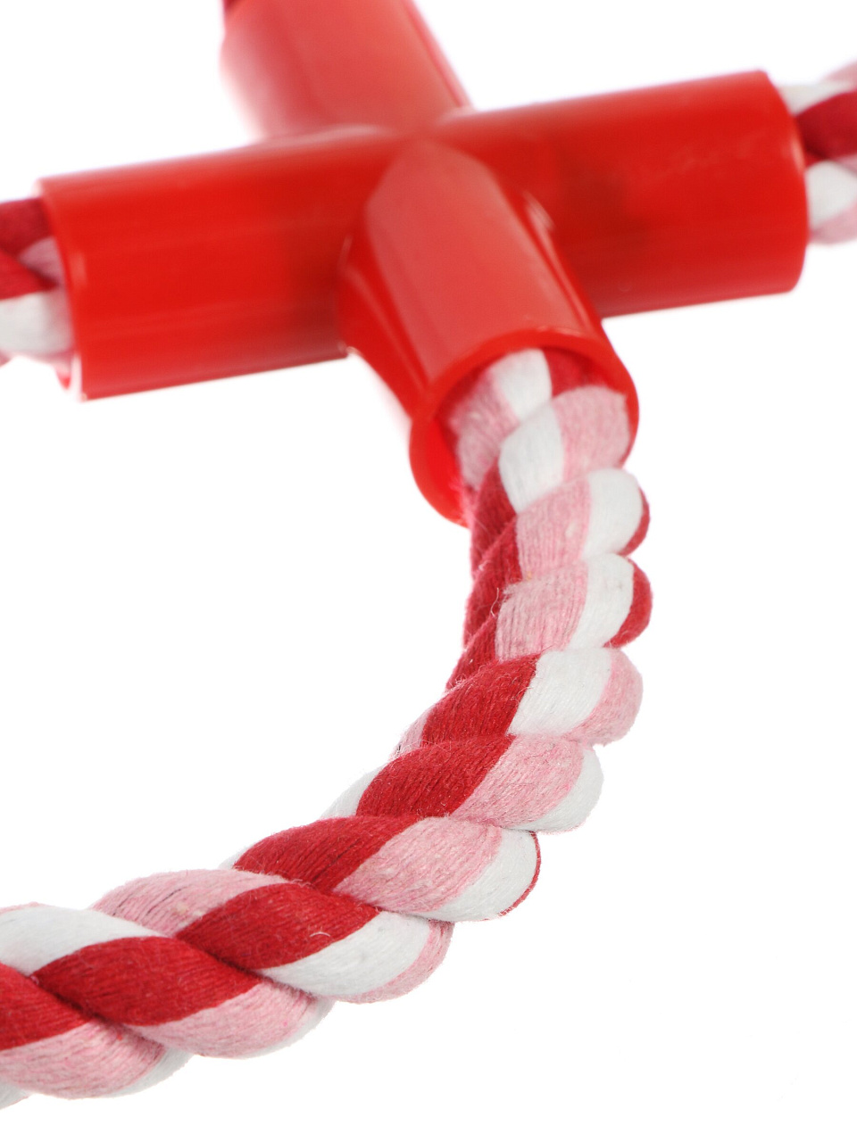 Игрушка выполнена из плотной верёвки, устойчива к разрывам, не содержит токсичных компонентов, подходит для животных с чувствительными зубами.