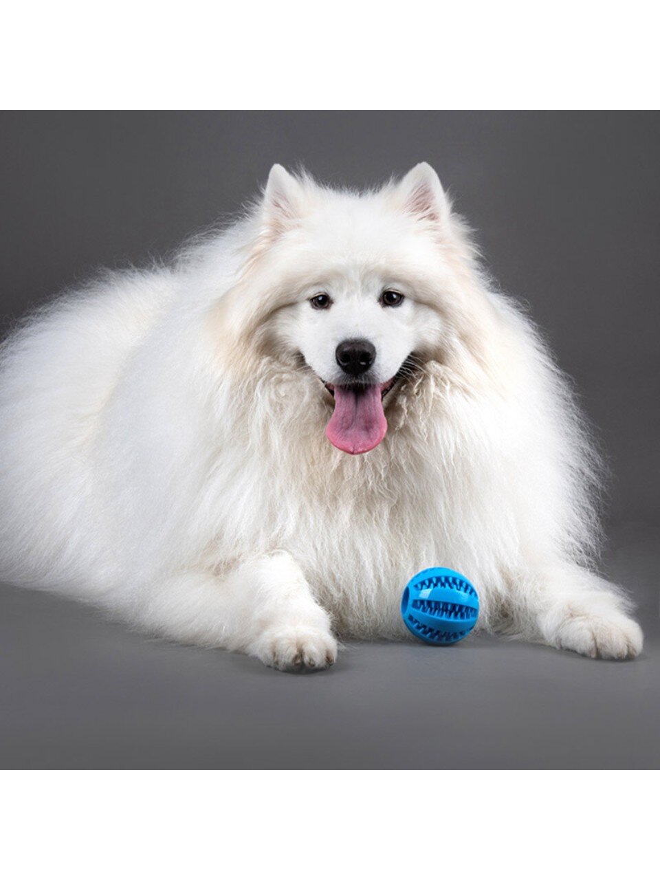 Диаметр игрушки — 7 см. Это оптимально для средних и крупных пород; для мелких собак рекомендуется выбирать мяч меньшего размера.