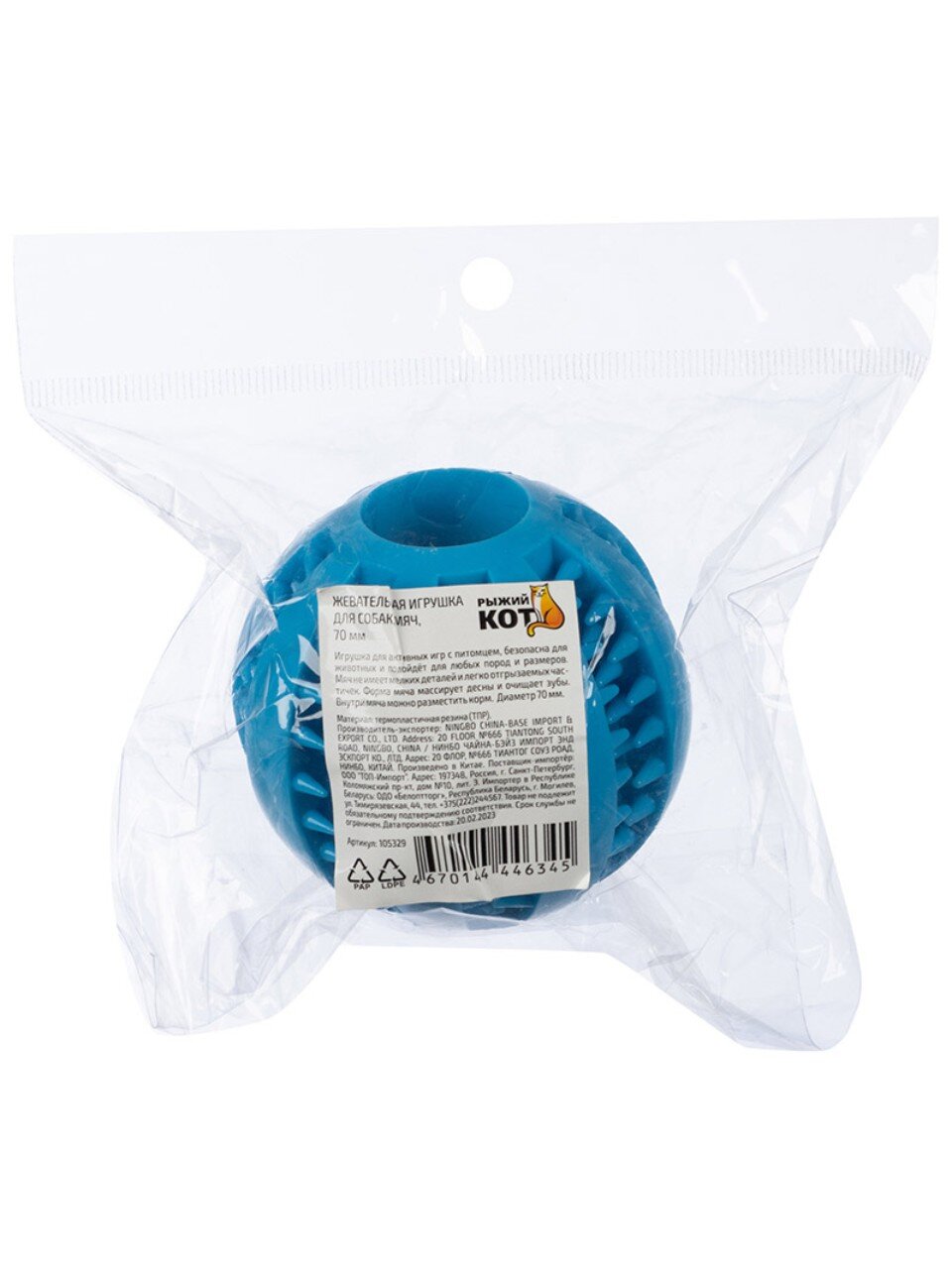 Игрушка для собак Рыжий кот, модель «Мяч», — это прочная и безопасная жевательная игрушка диаметром 7 см. Такой размер подходит для большинства средних и крупных пород, помогает развивать челюсти и поддерживать здоровье зубов. Многие владельцы ищут, какой мяч выбрать для собаки, чтобы он был интересен и не навредил: этот вариант сочетает упругость, долговечность и привлекательный дизайн, что делает его отличным выбором для ежедневных игр.