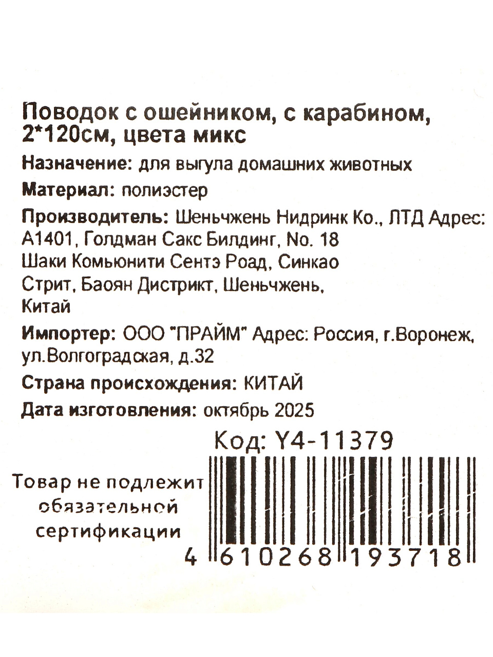 Вы можете приобрести «Поводок с ошейником, с карабином, 2х120 см, в ассортименте, Y4-11379» и другие товары в нашем интернет-магазине в Россоши по низким ценам и с бесплатным самовывозом.