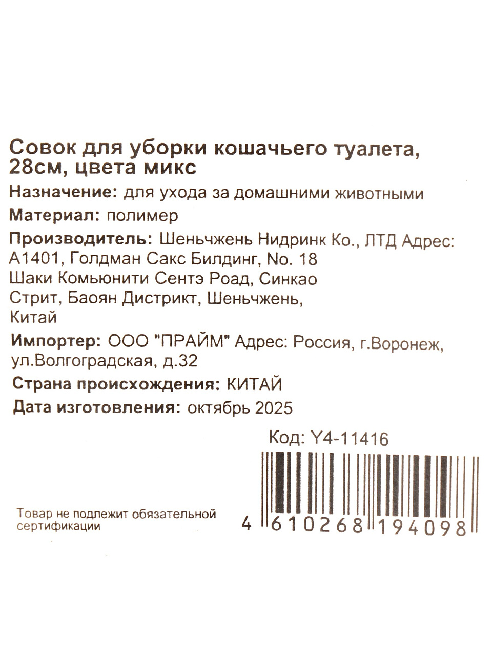 Вы можете приобрести «Совок для уборки кошачьего туалета, 28 см, в ассортименте, Y4-11416» и другие товары в нашем интернет-магазине в Ставрополе по низким ценам и с бесплатным самовывозом.