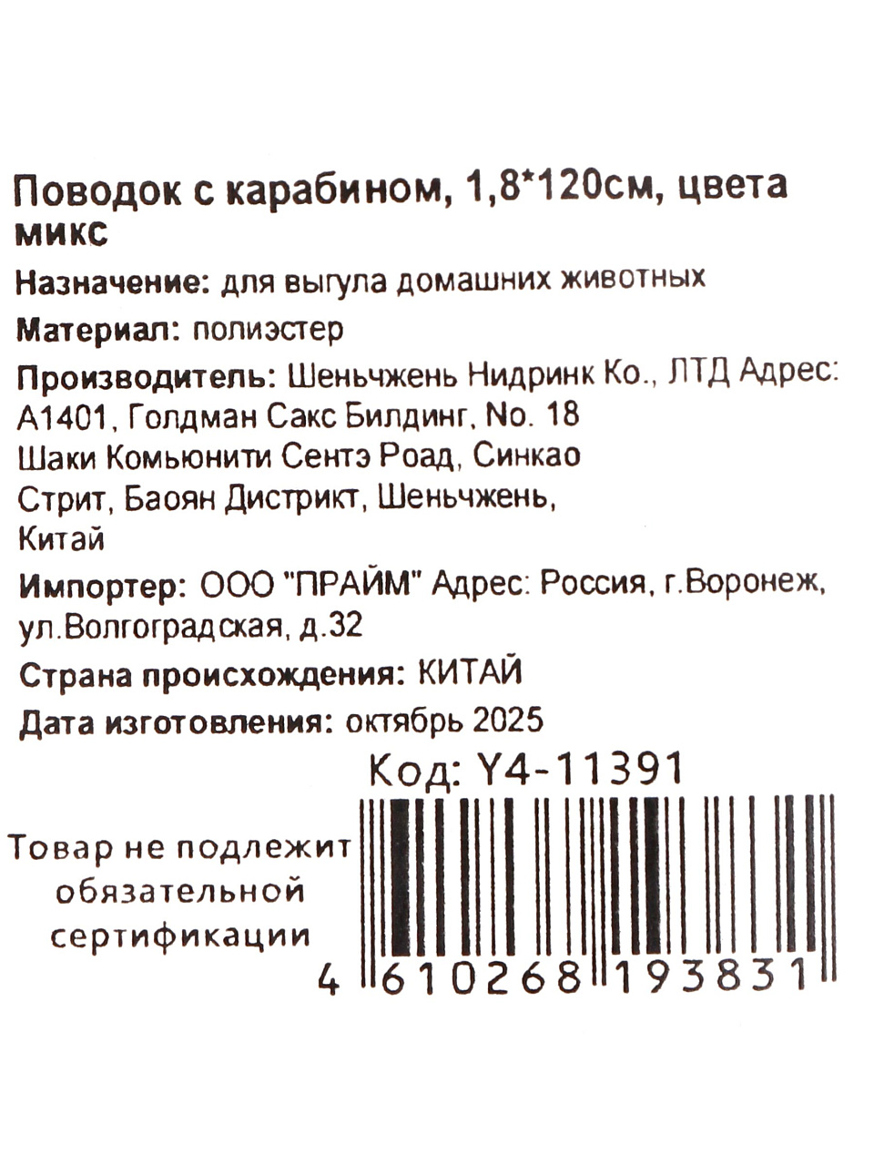 Вы можете приобрести «Поводок с карабином, 1.8Х120 см, в ассортименте, Y4-11391» и другие товары в нашем интернет-магазине в Россоши по низким ценам и с бесплатным самовывозом.