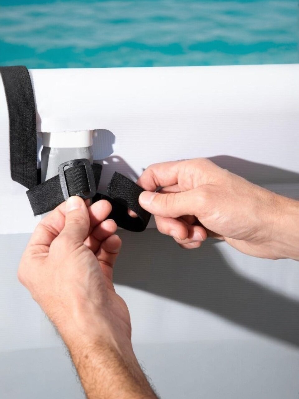 Тренажер для плавания Bestway позволяет тренироваться даже в небольшом бассейне. Пояс надежно фиксируется на талии с помощью ремня с регулируемой застежкой. Эластичные полосы ремня крепятся к боковым стенкам бассейна.