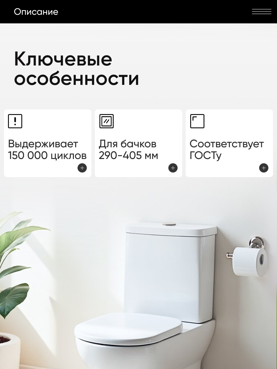 - Диаметр отверстия в крышке бачка - от 25 до 40 мм.