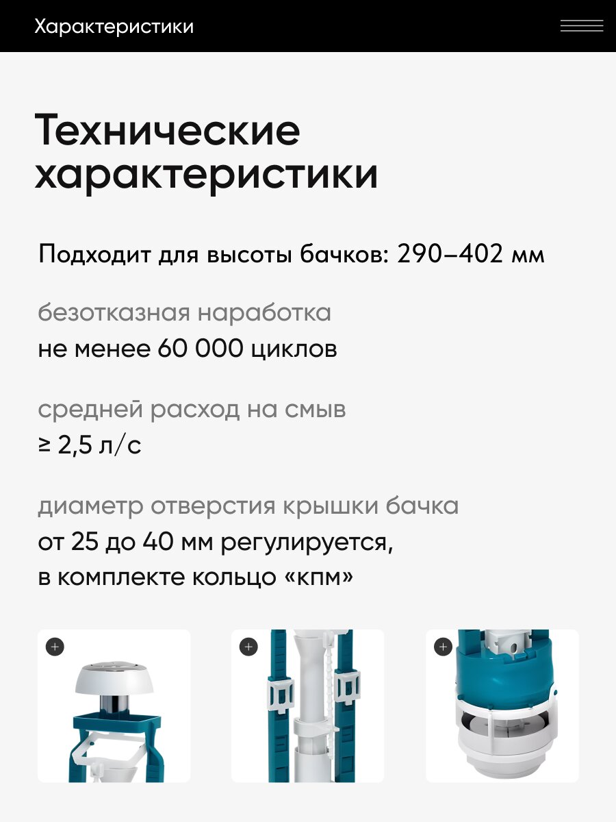 Установка клапана в бачках с разными отверстиями в крышке возможна благодаря дополнительному переходному кольцу "кпм", которое расположено под кнопкой и входит в комплект сливного клапана СБкпм.