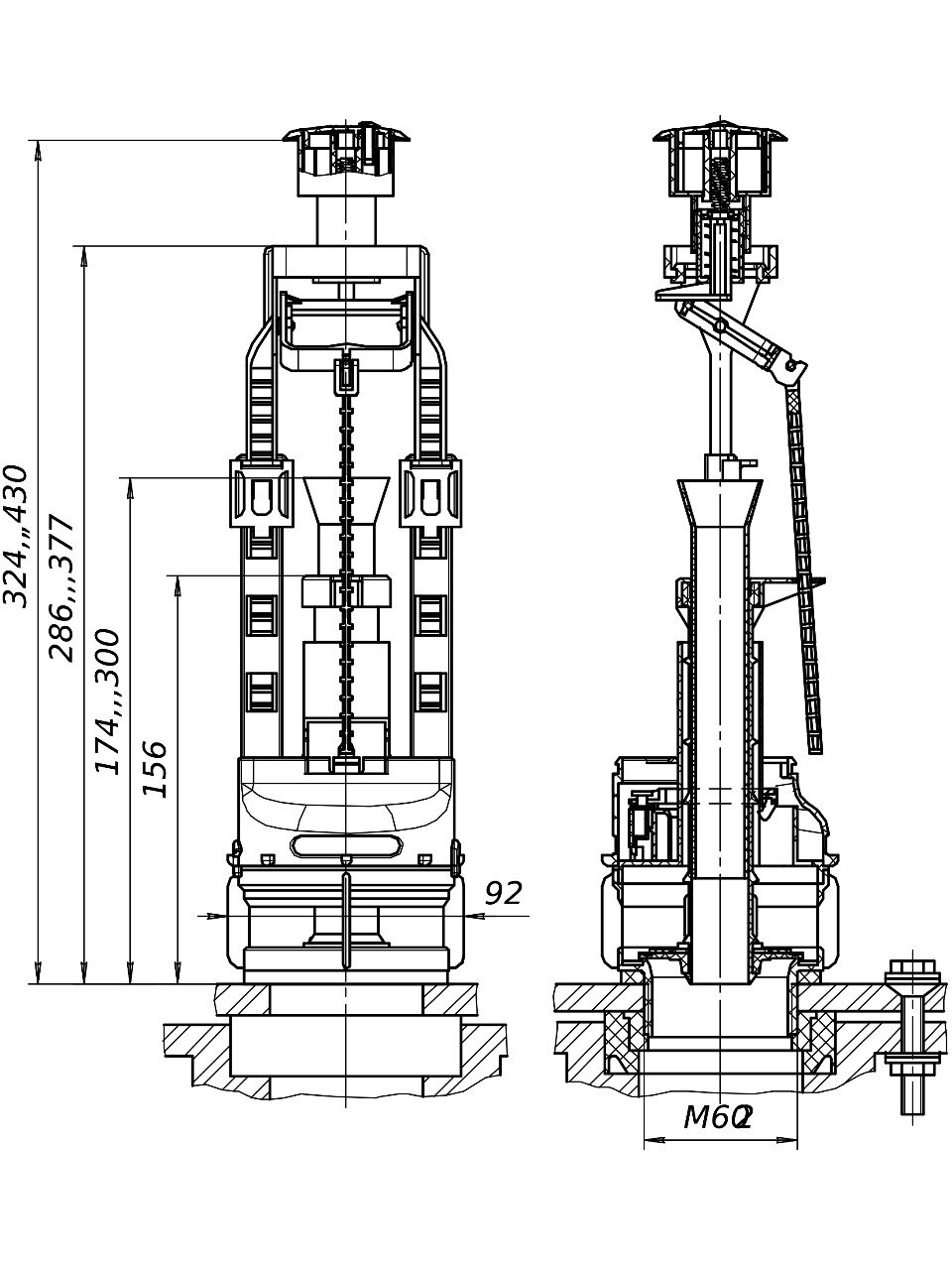 Сливной клапан СБ2м предназначен для использования в смывных бачках высотой от 315 до 430 мм и с диаметром отверстия в крышке бачка 40 мм.