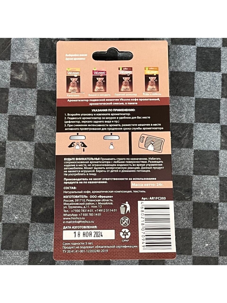Вы можете приобрести «Ароматизатор в машину подвесной, мешочек, Freshco, Coffee Натуральный кофе, AR1FC203» и другие товары в нашем интернет-магазине в Коврове по низким ценам и с бесплатным самовывозом.