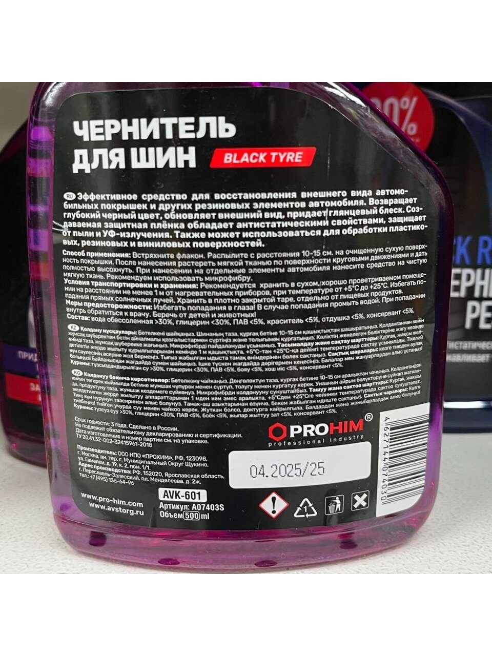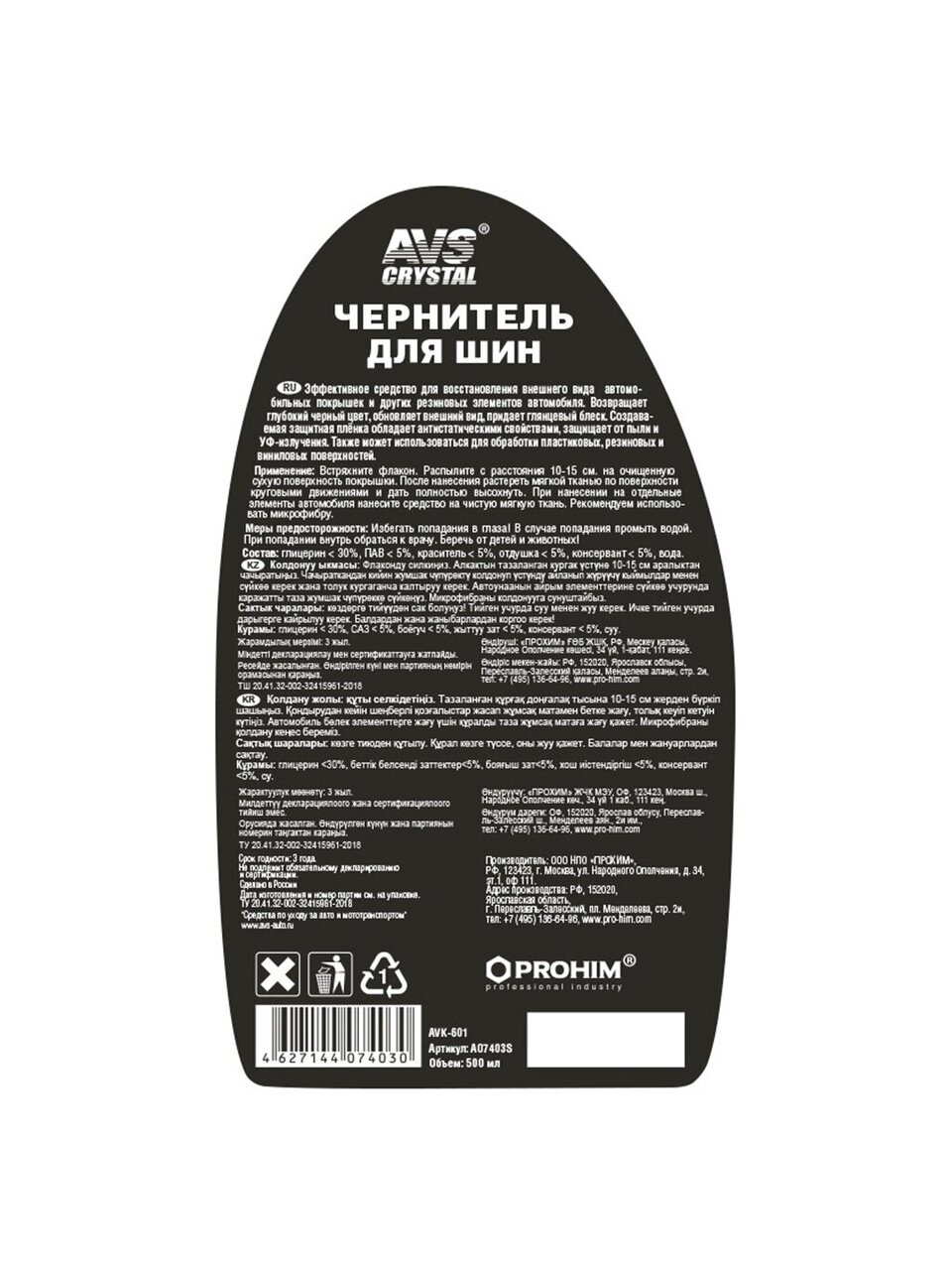 Чернитель шин AVS, Black Tyre AVK-601, 500 мл, триггер, A07403S