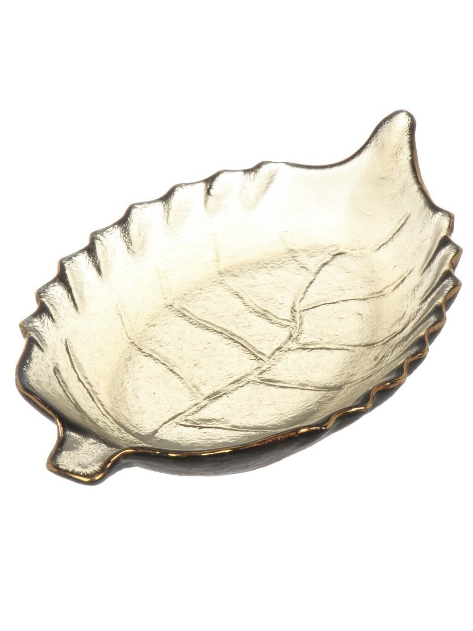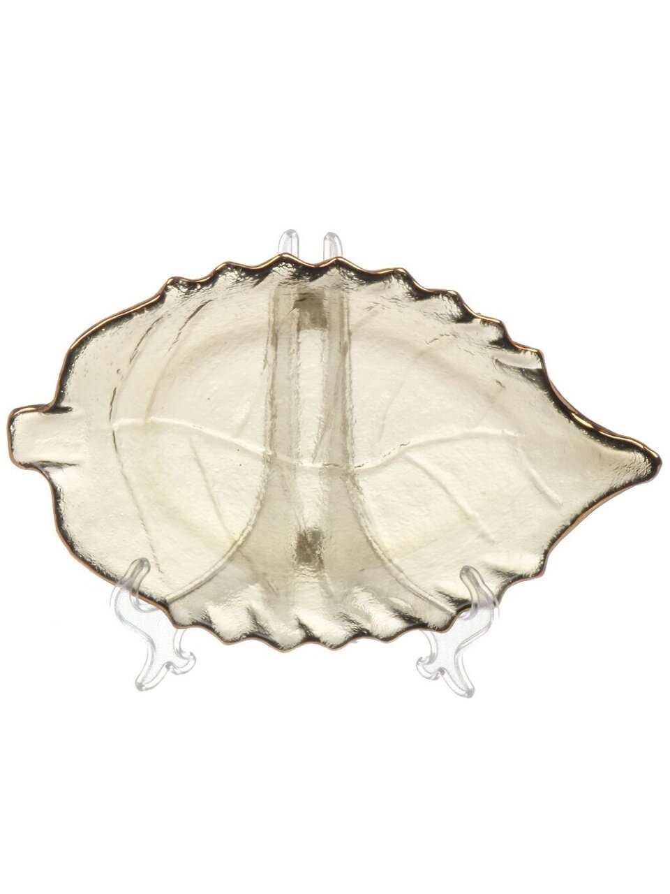 Часто спрашивают, чем отличается фигурное стеклянное блюдо от обычной тарелки. Благодаря рельефной форме и рисунку листья, оно выглядит презентабельнее и отлично подходит для подачи не только салатов, но и сырной или мясной нарезки, фруктов. Размер 22 см позволяет использовать его как универсальную сервировочную посуду для любых закусок. Можно ли мыть в посудомоечной машине? Нет, изделие требует деликатного ручного ухода для сохранения декоративной отводки. По сравнению с аналогами из керамики или пластика, стекло с золотой отделкой смотрится дороже и долговечнее при аккуратном использовании.