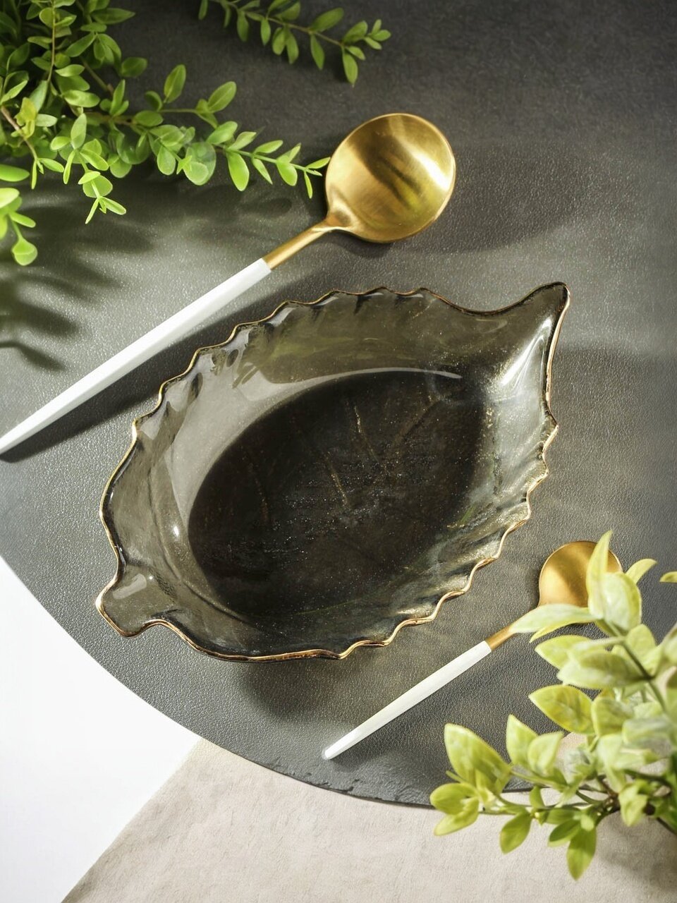 Блюдо стеклянное фигурное «Лилия» — это изысканная посуда для салата, которая сразу привлекает внимание благодаря своей необычной форме листа и декоративной золотой отводке. Такой аксессуар не только украсит сервировку, но и подчеркнёт индивидуальность вашего стола. Если вы ищете, какое блюдо выбрать для салата на Новый год или семейный ужин — обратите внимание на этот вариант: он гармонично впишется как в классический, так и в современный интерьер.