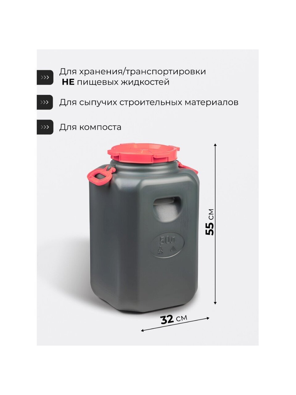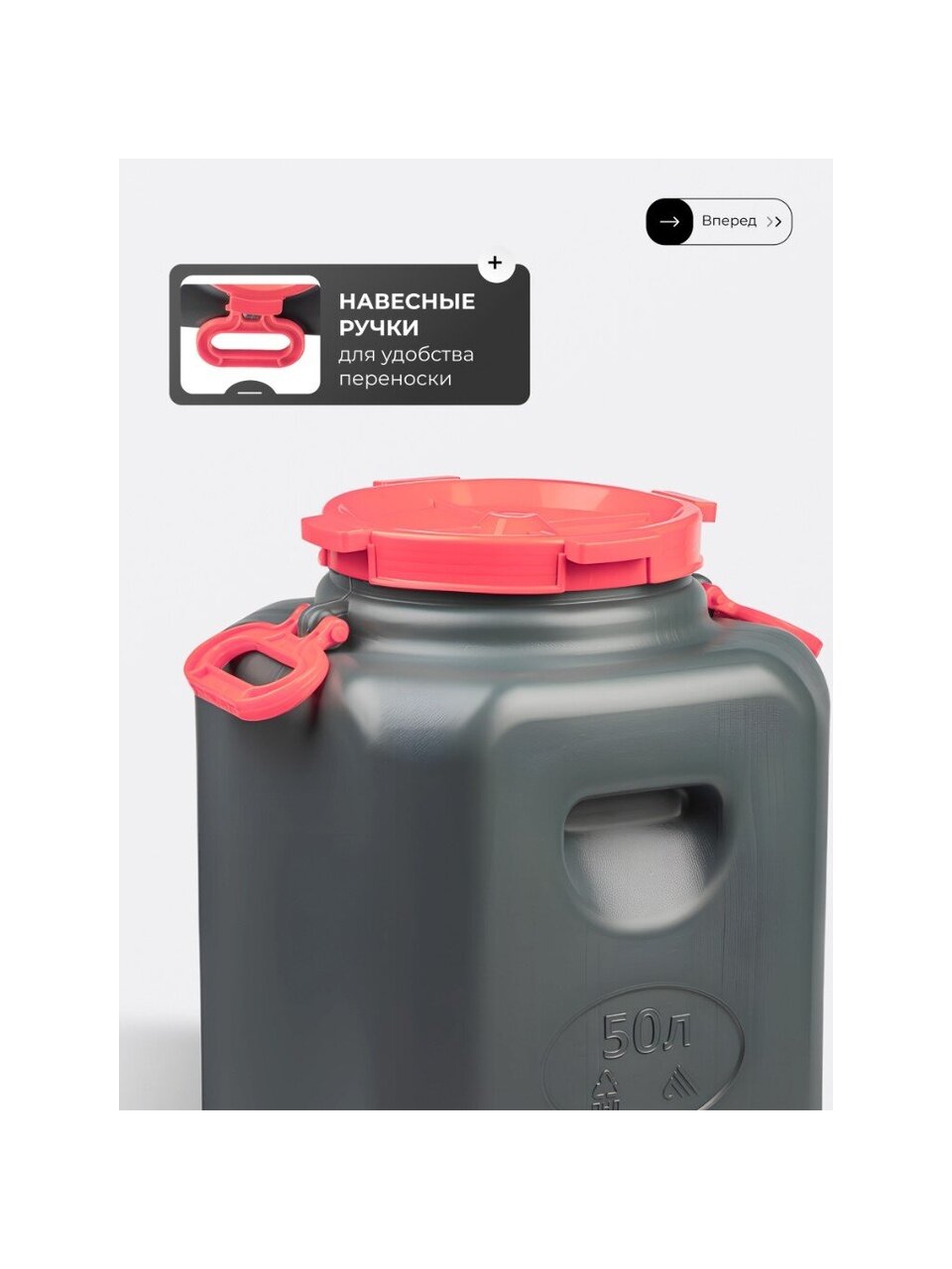 - Вместительность в 50 литров позволяет хранить и перевозить значительные объемы жидкости.