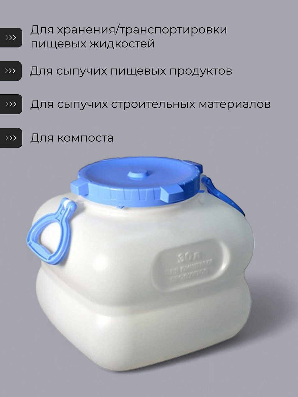 Бочка Martika Гранде 30 л — надежное решение для хранения и транспортировки пищевых продуктов. Удобные ручки, квадратная форма, безопасный пластик. Идеальный выбор для дачи и дома.