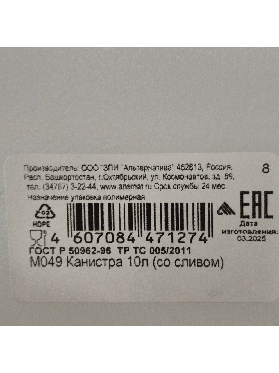 Откройте для себя идеальное решение для хранения и транспортировки жидкостей – канистра пластик, 10 л, прямоугольная, со сливом, М049 от бренда "Альтернатива". Этот продукт станет незаменимым помощником в повседневной жизни, обеспечивая удобство и надежность при использовании.