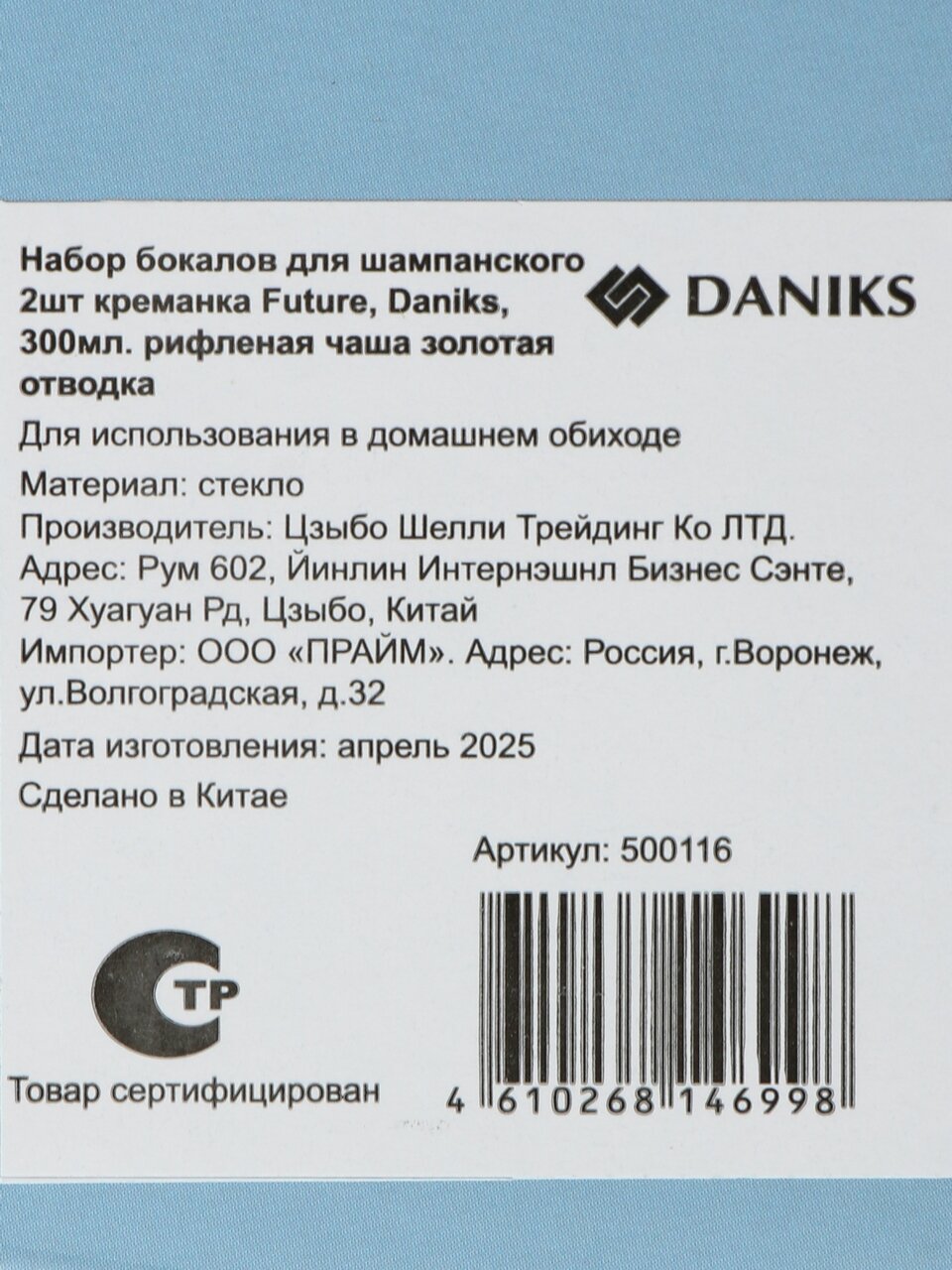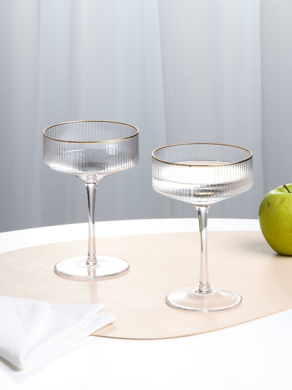 Бокал для шампанского, 300 мл, стекло, 2 шт, риф, креманка, зол.отв, Future, Daniks