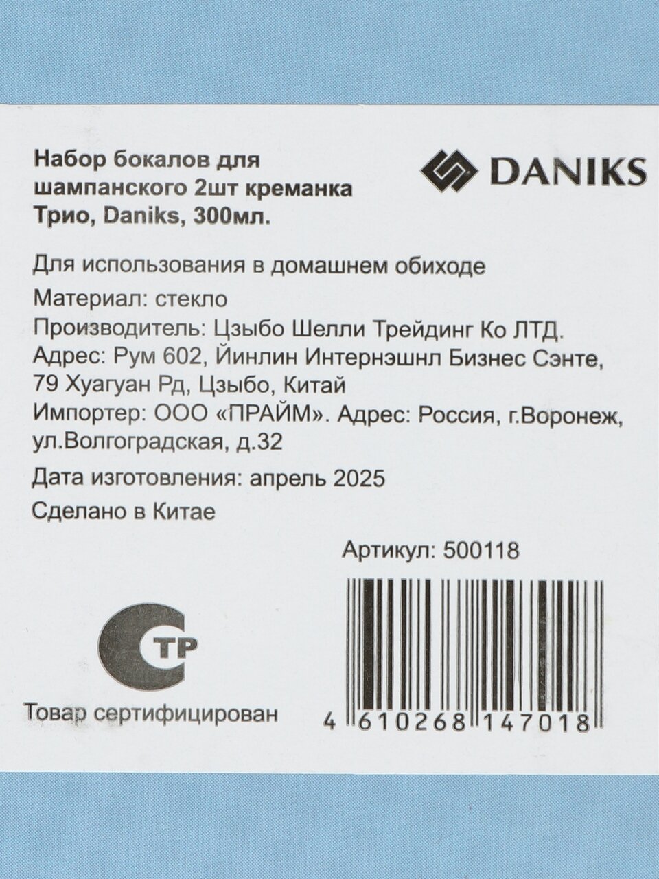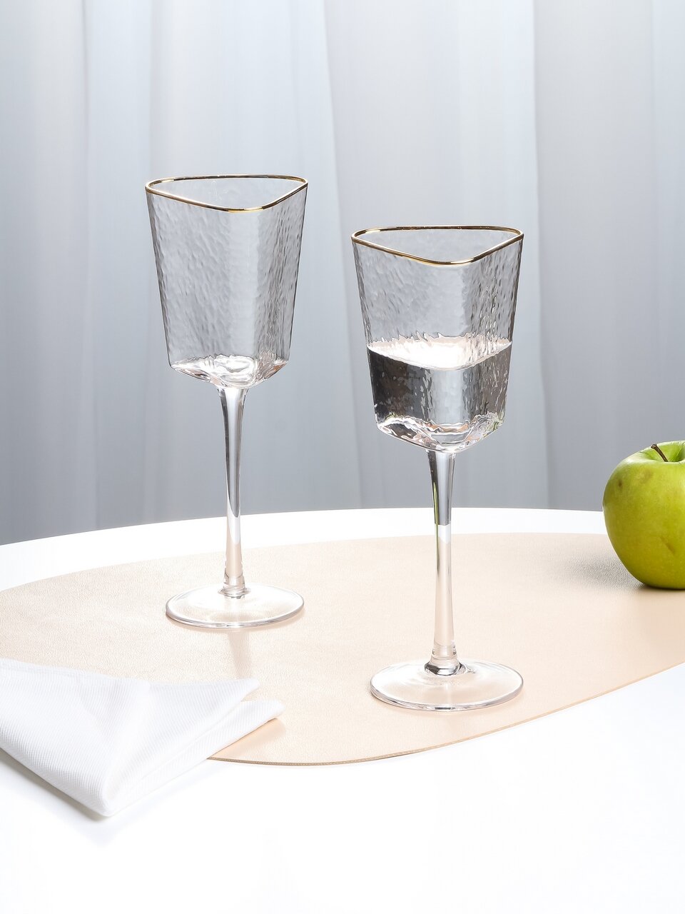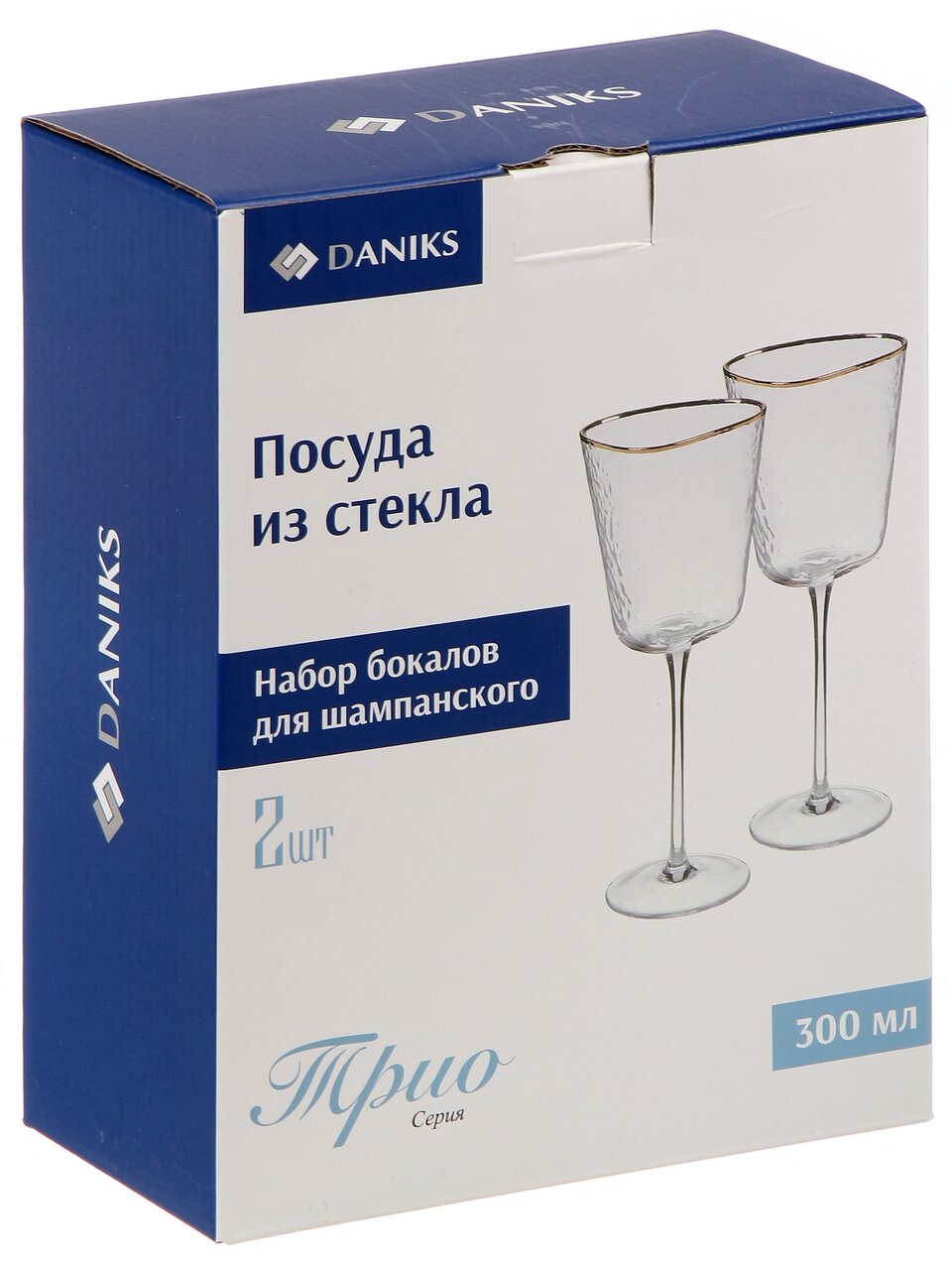 Бокал для вина, 300 мл, стекло, 2 шт, с золотой отводкой, Трио, Daniks