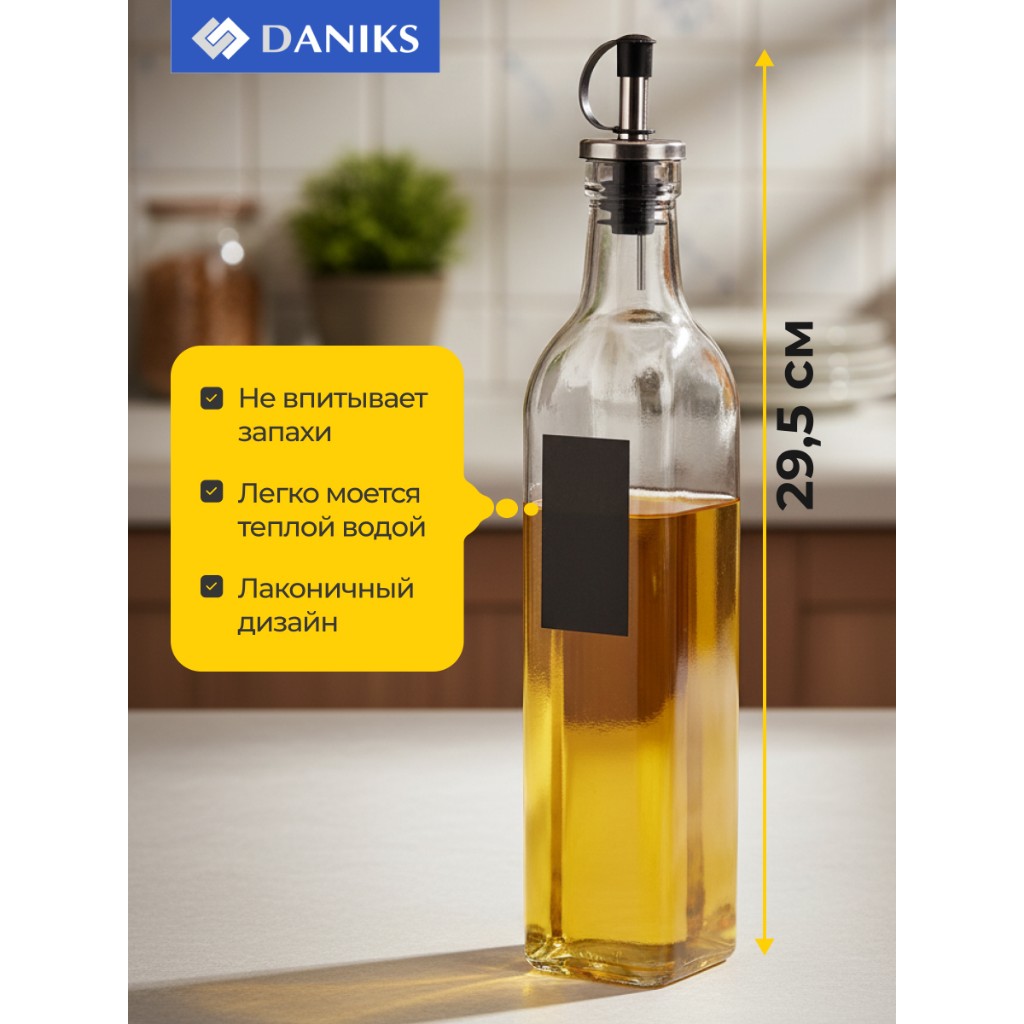 Представляем бутылку для масла из стекла объемом 500 мл от бренда Daniks, модель OP5929. Это идеальное решение для хранения и подачи масла на вашей кухне. Стильный и функциональный аксессуар, который станет незаменимым помощником в приготовлении пищи.
