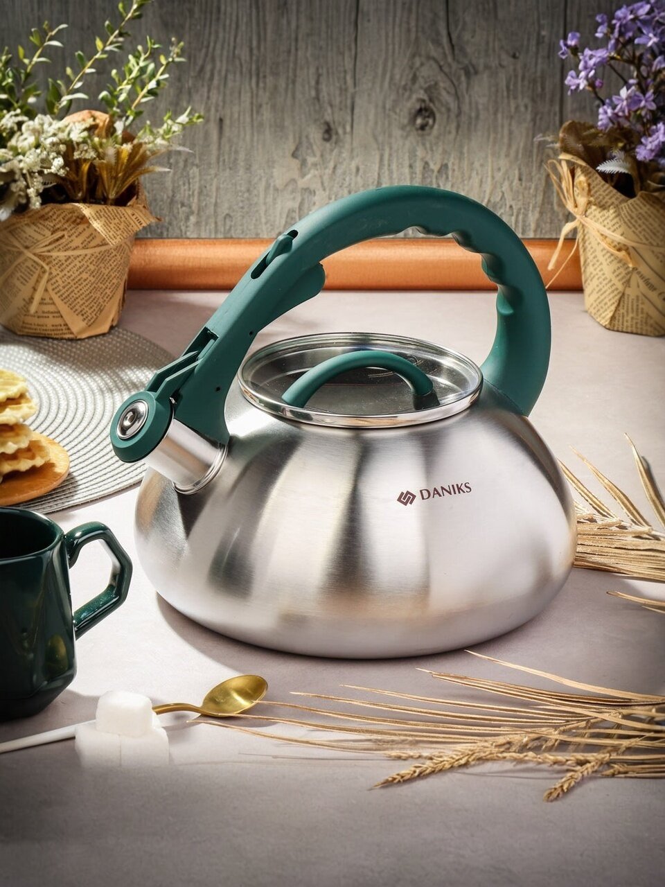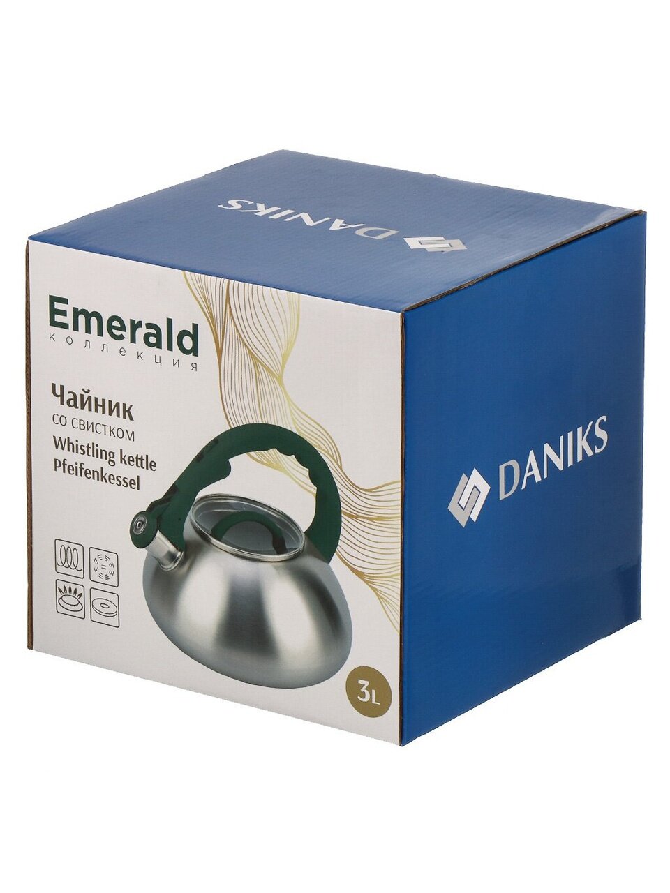 Вы можете приобрести «Чайник нержавеющая сталь, 3 л, со свистком, матовый, ручка с силиконовым покрытием, Daniks, индукция, изумрудный, DSC-8805» и другие товары в нашем интернет-магазине в Казани по низким ценам и с бесплатным самовывозом.