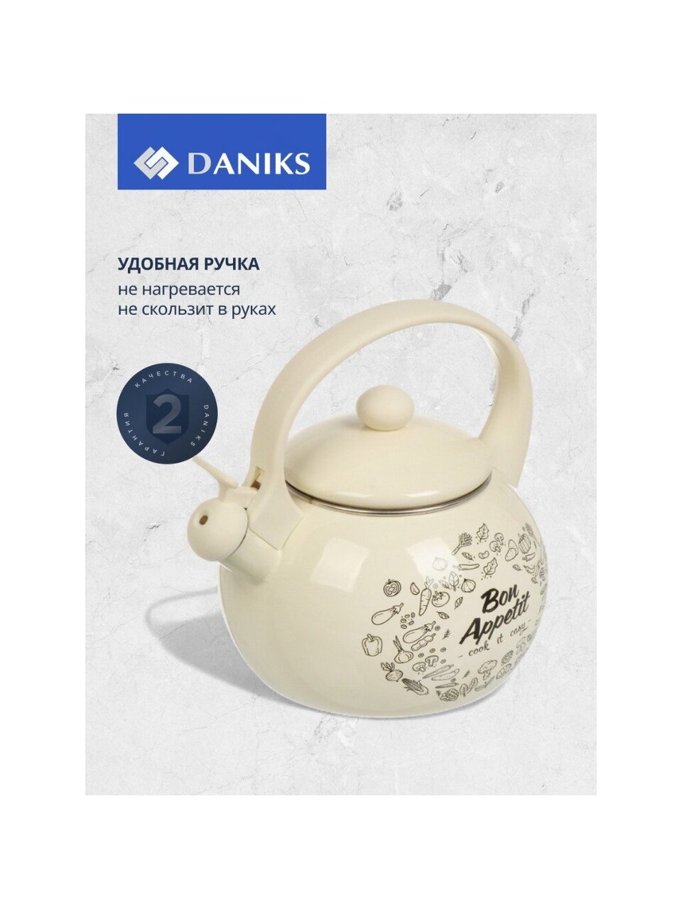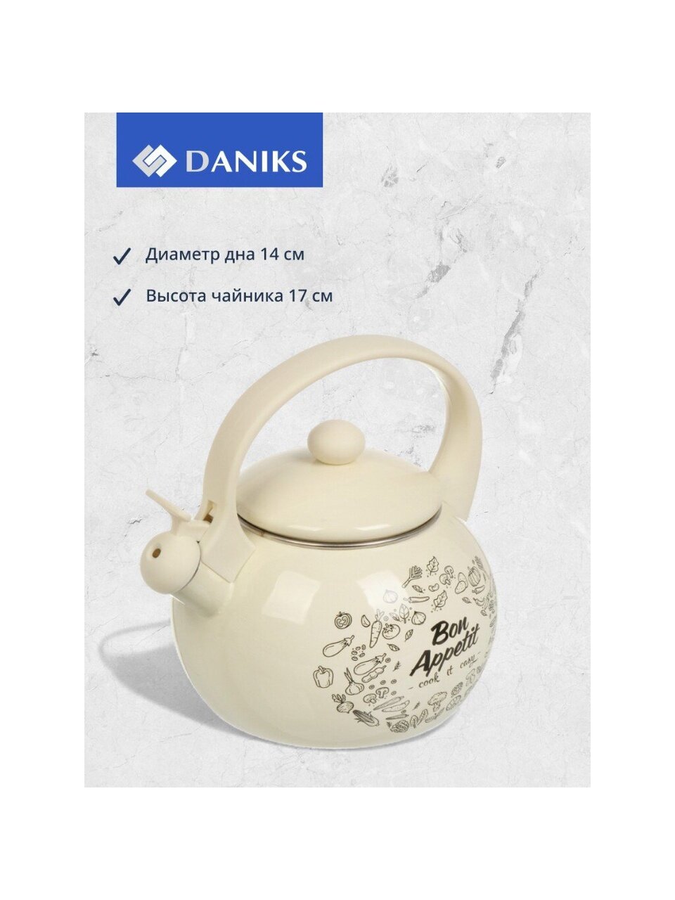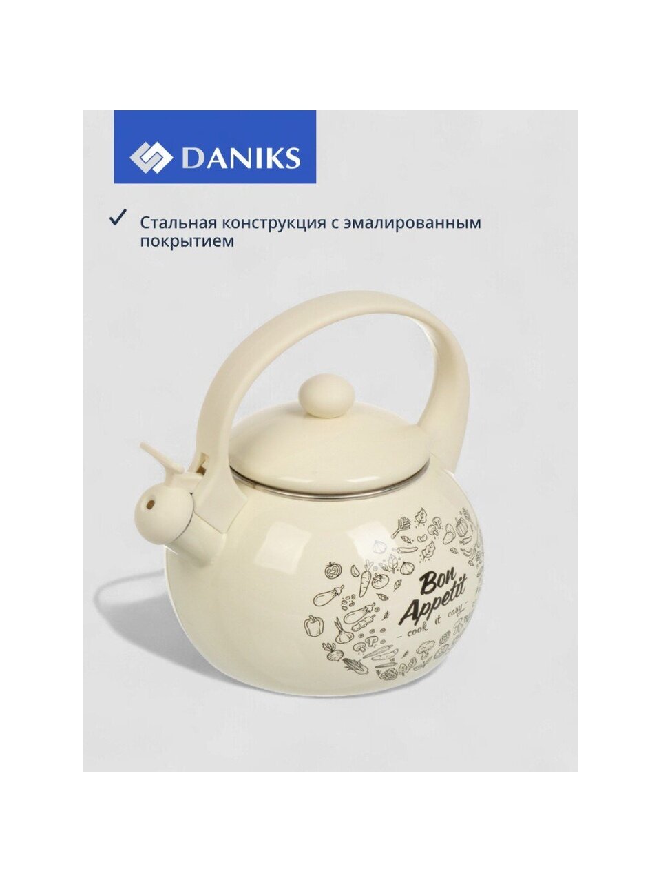 Вы можете приобрести «Чайник сталь, эмалированное покрытие, 2.2 л, со свистком, Daniks, Bon Appetit, индукция» и другие товары в нашем интернет-магазине в Ставрополе по низким ценам и с бесплатным самовывозом.