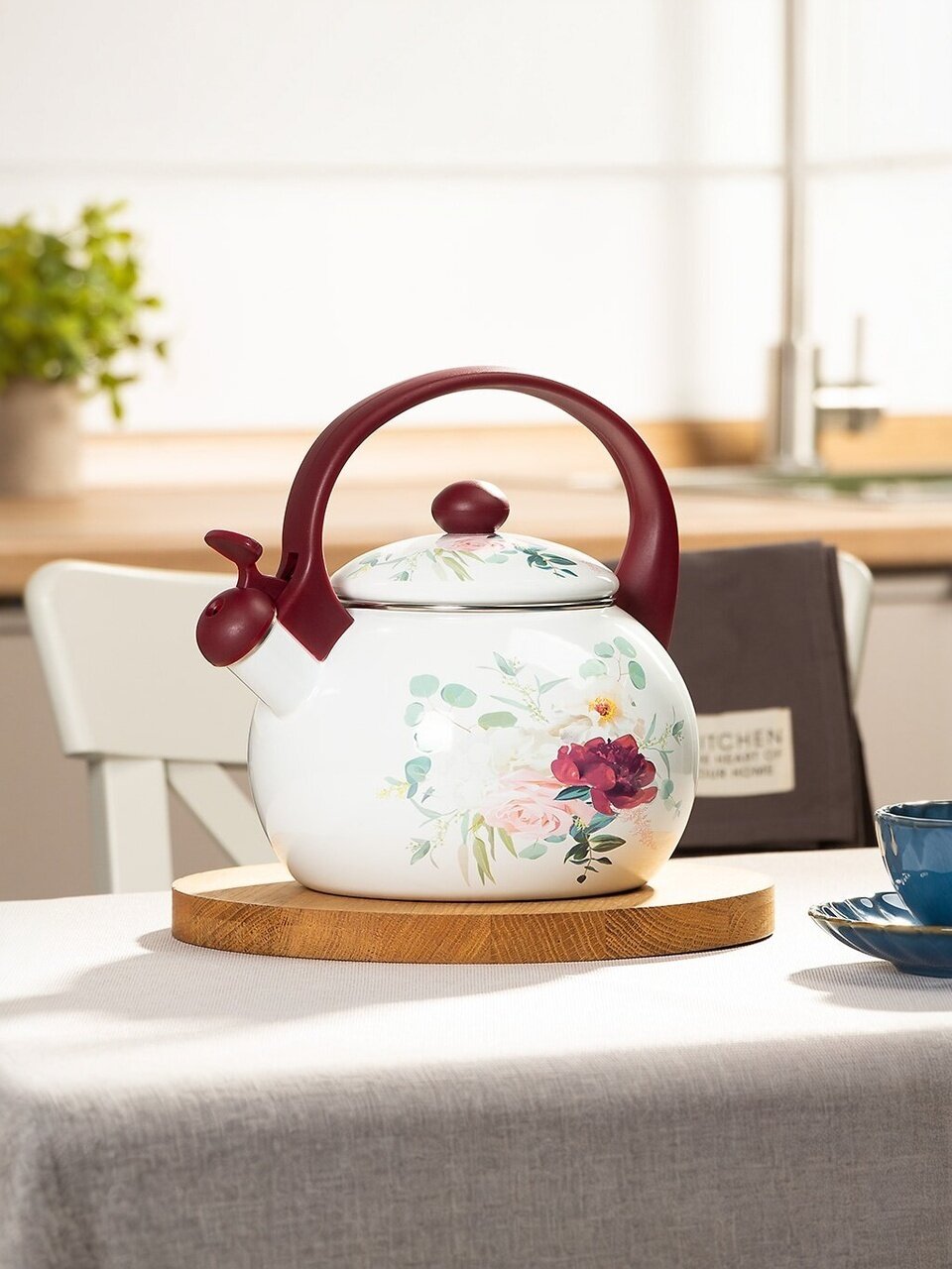 Удобство использования обеспечивается термоизолированной ручкой, которая не нагревается в процессе кипячения, а свисток подскажет, когда вода достигнет нужной температуры. Чайник совместим с различными типами плит: газовыми, галогеновыми, индукционными, стеклокерамическими и электрическими, что делает его универсальным выбором для любого дома.