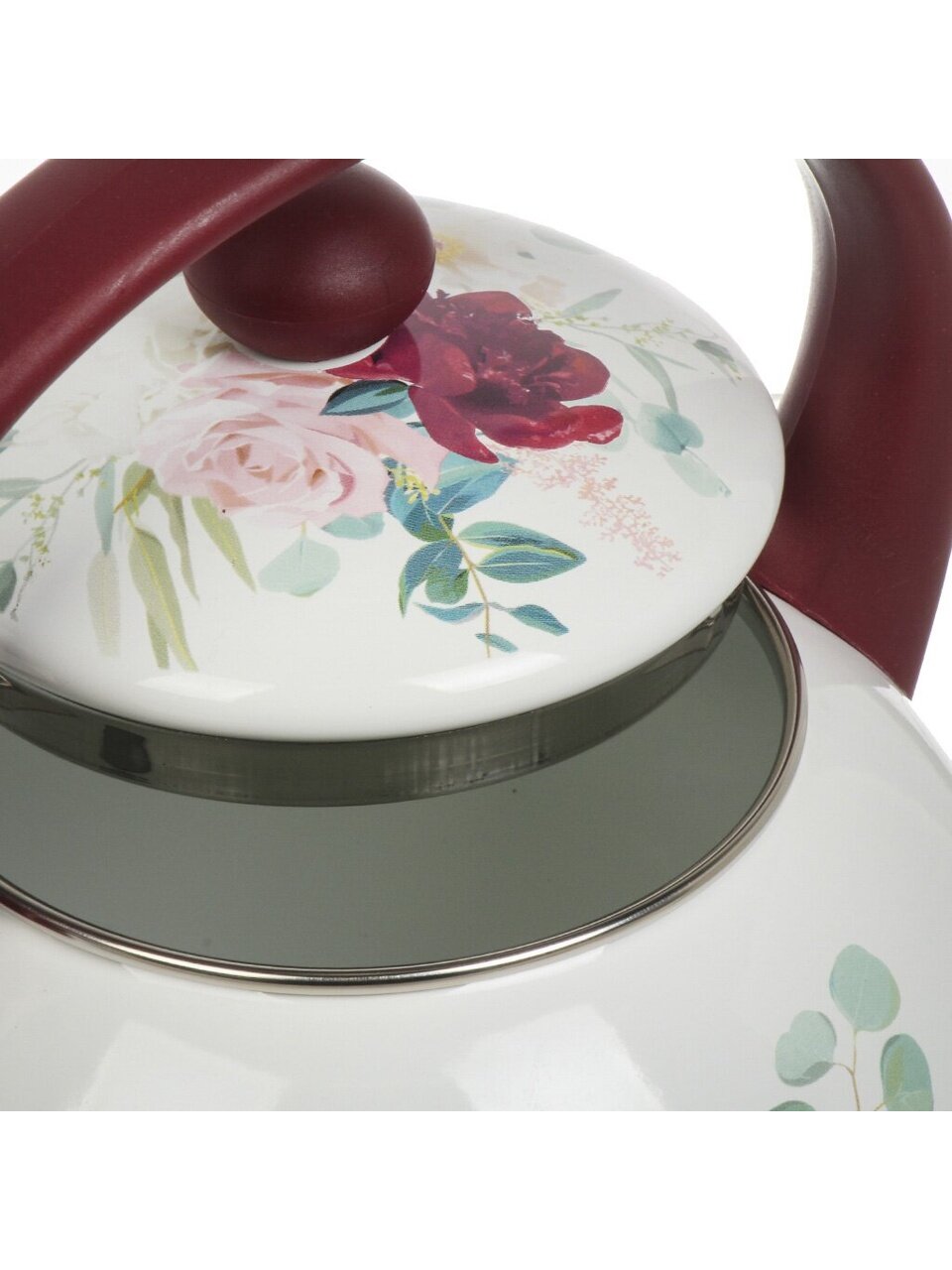 Чайник объемом 2.2 литра выполнен из прочной стали с эмалированным покрытием, что обеспечивает долговечность и надежность. Эмалированное покрытие не только защищает корпус от коррозии, но и придает изделию яркость и блеск, который не потускнеет со временем. Белый цвет с декоративным оформлением "Букет" добавляет изысканности и утонченности, делая чайник настоящим украшением кухни.