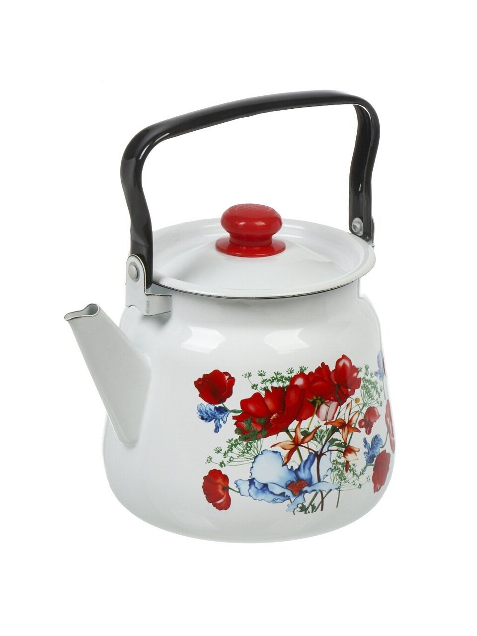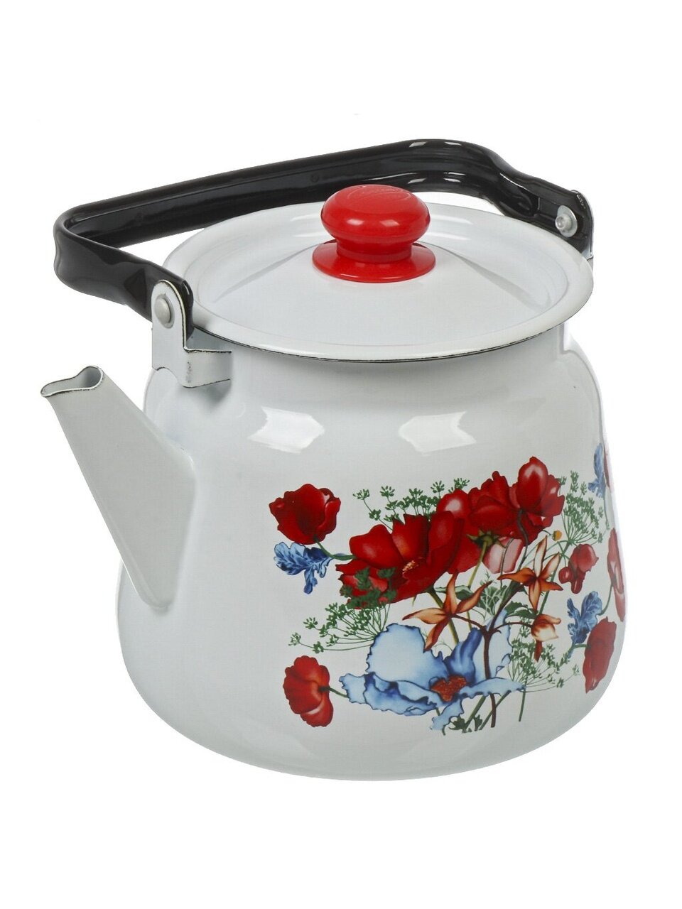 Чайник из стали с эмалированным покрытием 3,5 л «Цветы красные» — стильное решение для дома и дачи. Безопасная кнопка, яркий декор, подходит для посудомоечной машины.