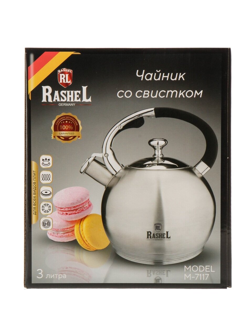 Вы можете приобрести «Чайник нержавеющая сталь, 3 л, со свистком, матовый, RasheL, индукция, серебристый, М-7117» и другие товары в нашем интернет-магазине в Краснодаре по низким ценам и с бесплатным самовывозом.