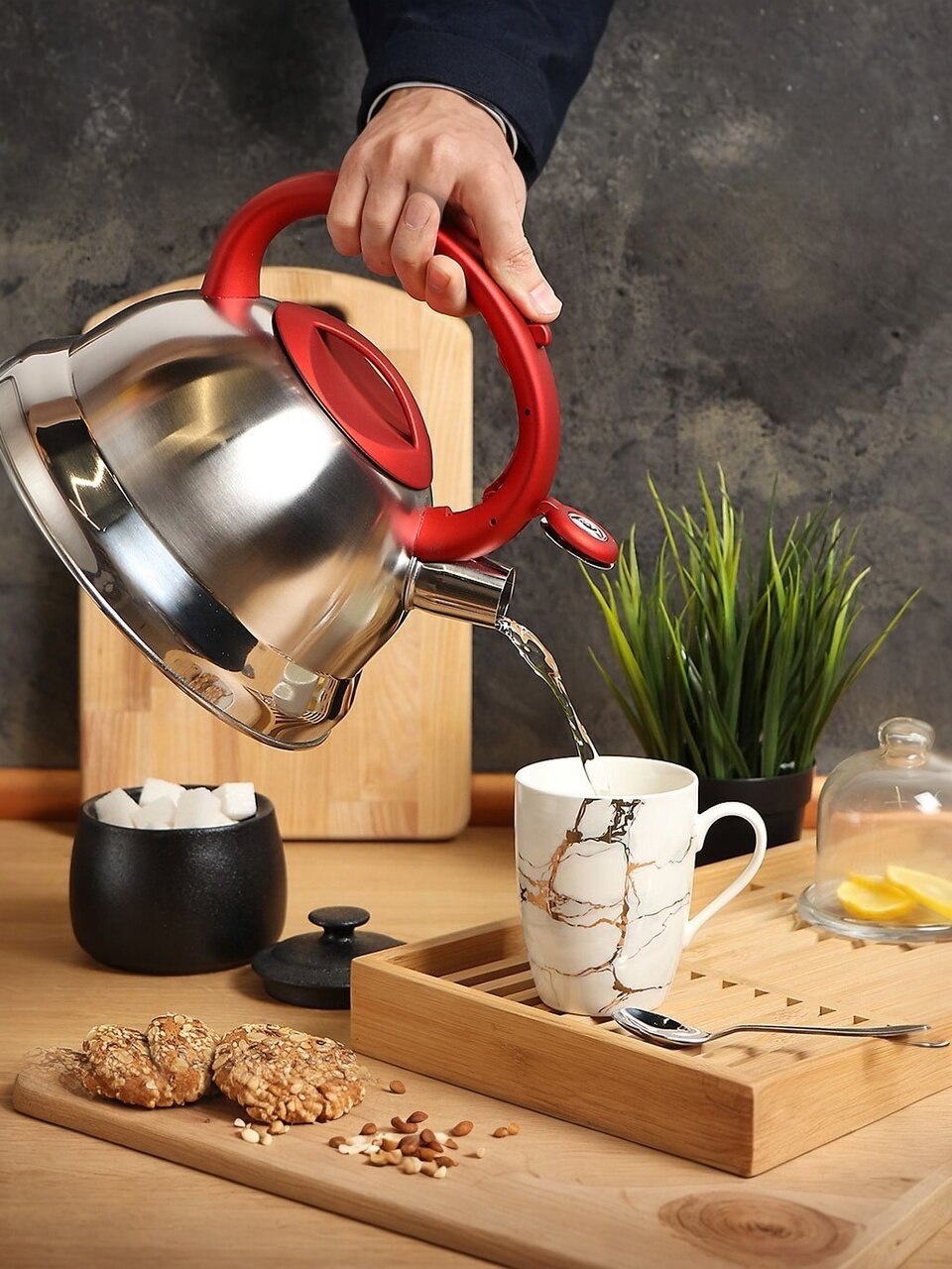 Вы можете приобрести «Чайник нержавеющая сталь, 2.8 л, со свистком, матовый, ручка с силиконовым покрытием, Daniks, красный, MSY-013R» и другие товары в нашем интернет-магазине в Орле по низким ценам и с бесплатным самовывозом.