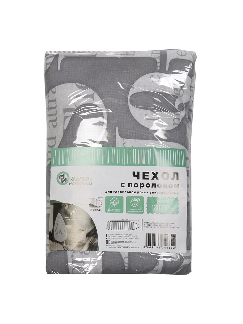 Представляем чехол для гладильной доски и парогенератора от бренда "Марья Искусница". Этот серый чехол с поролоном обеспечивает надежную защиту и комфорт при глажении. Идеально подходит для досок размером 130х52 см, что делает его универсальным решением для дома.