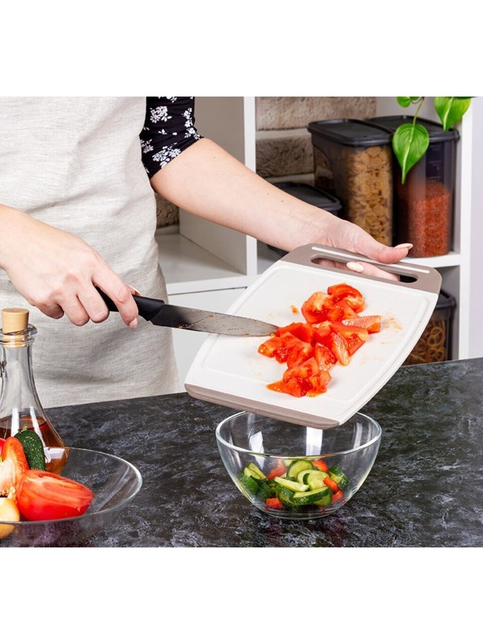 Доска разделочная пластик, 30х20 см, с ручкой, кремовый, прямоугольная, Idea, Хеви, М 1565