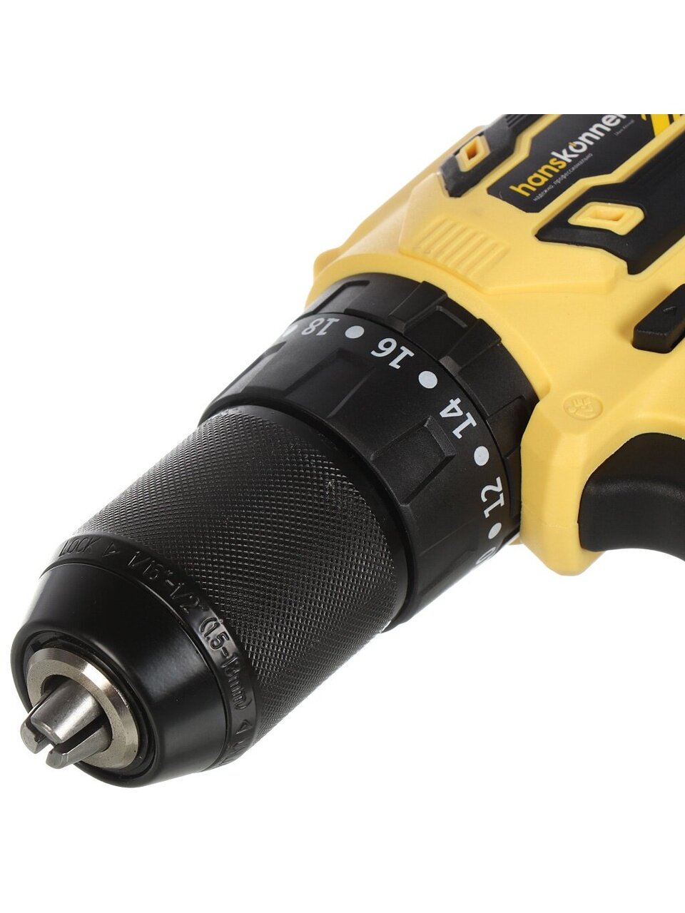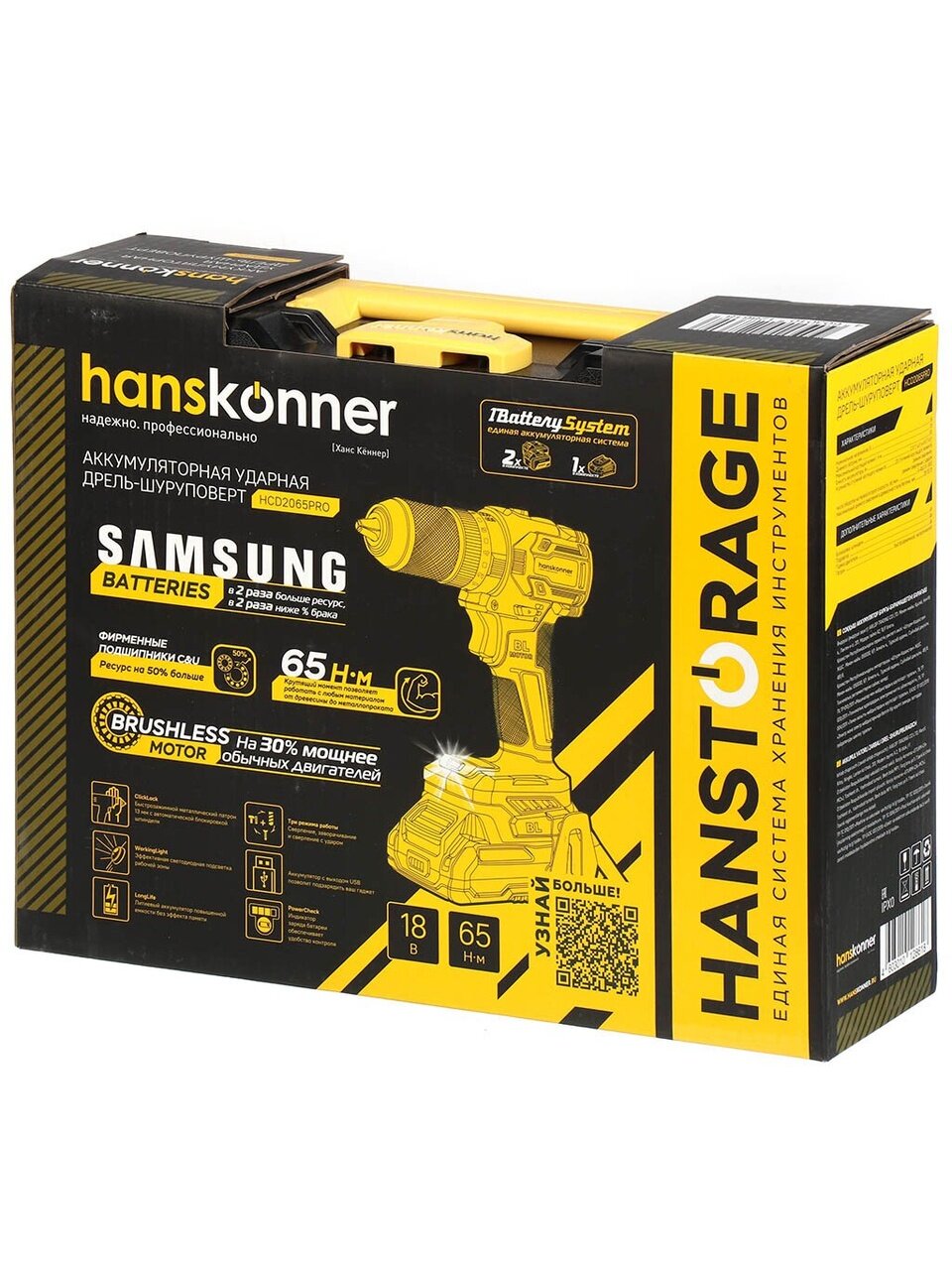 - Hanskonner HCD2065PRO — это аккумуляторный двухскоростной шуруповерт, который является частью системы 1BatterySystem. Это обеспечивает совместимость аккумулятора с целым рядом наименований инструмента.