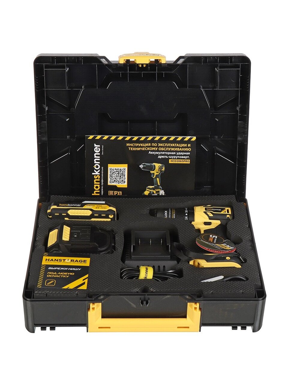 Hanskonner HCD2065PRO — ваш надежный спутник в мире ремонта! Мощный и быстрый, он легко справится с любыми задачами. Благодаря двум аккумуляторам в комплекте и быстрой зарядке вы сможете работать без остановки.