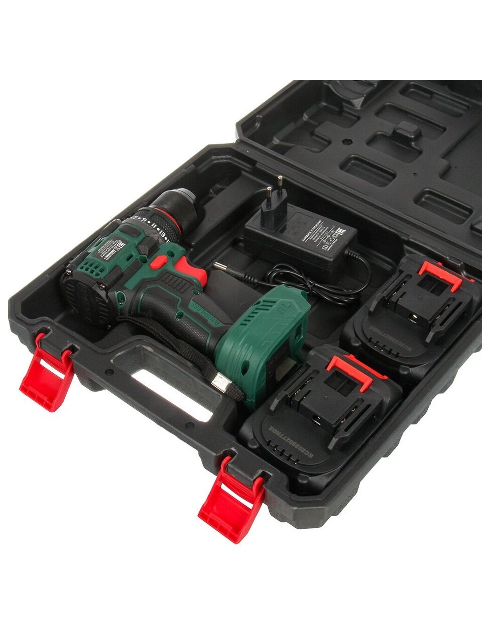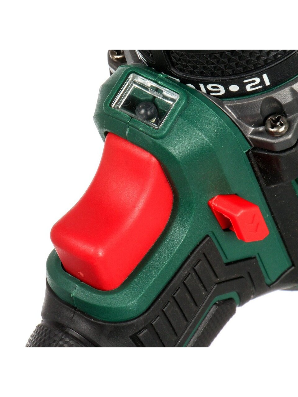 Эргономичный дизайн и компактные размеры позволяют легко использовать дрель-шуруповерт в труднодоступных местах. Быстрозажимной патрон обеспечивает быструю смену насадок, а кейс в комплекте делает хранение и транспортировку максимально удобными. Зеленый цвет корпуса подчеркивает современный стиль инструмента, а гарантия от производителя на 12 месяцев подтверждает его качество и надежность.