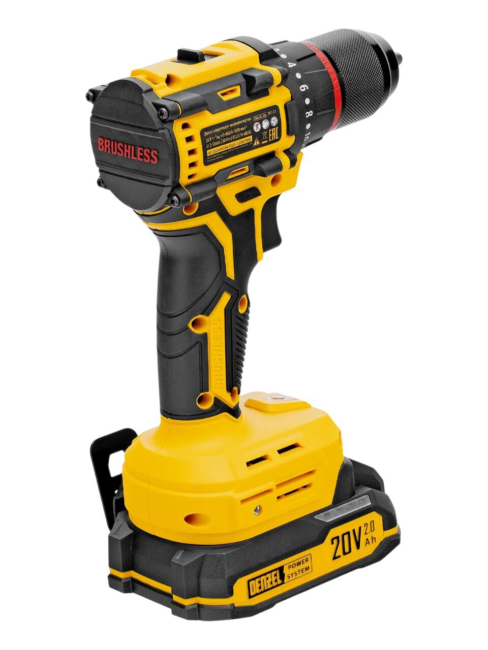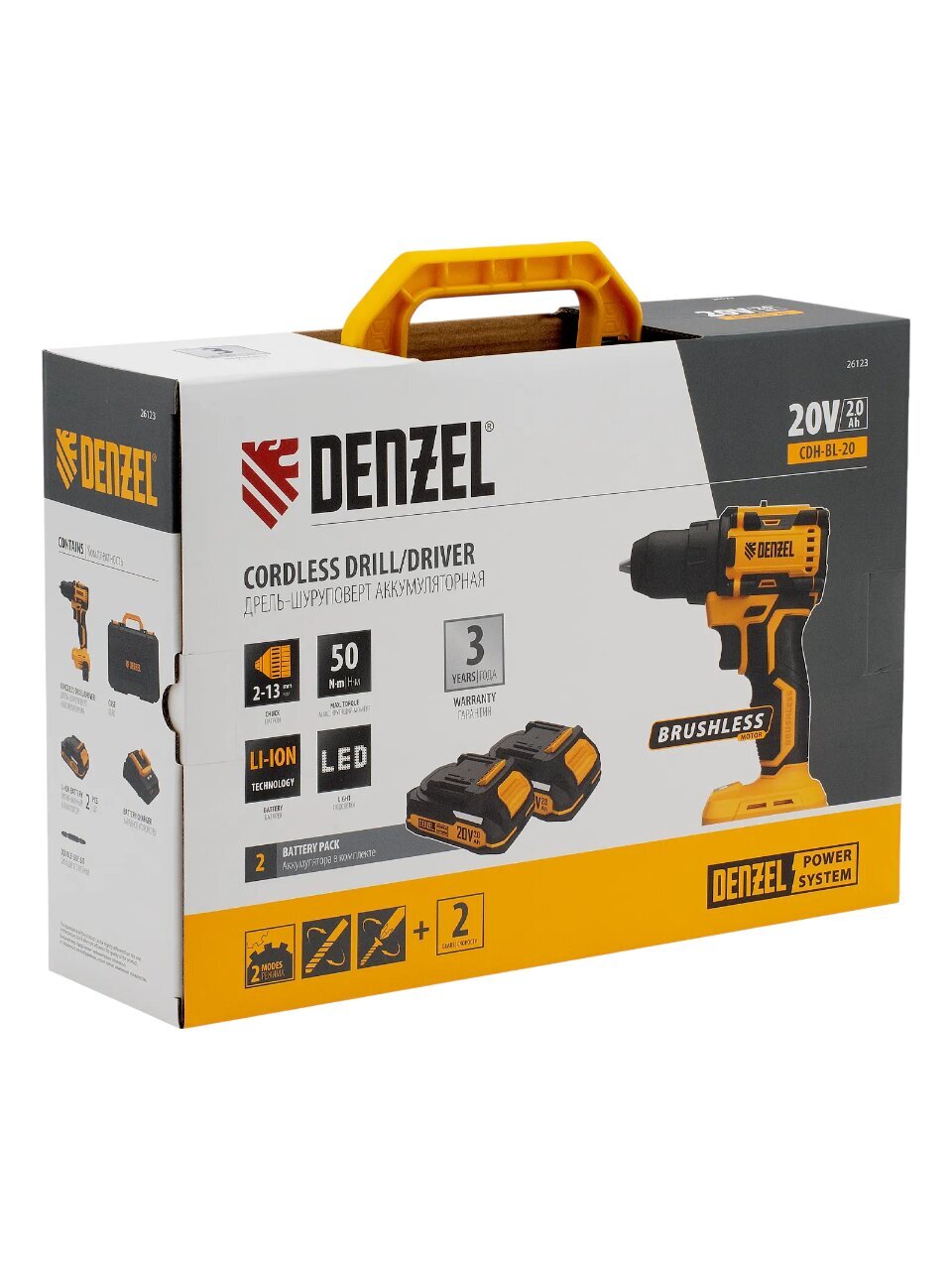 Вы можете приобрести «Дрель-шуруповерт аккумуляторный, Denzel, CDH-BL-20, бесщеточный, 20 В, кейс, черно-желтый, 26123» и другие товары в нашем интернет-магазине в Тамбове по низким ценам и с бесплатным самовывозом.