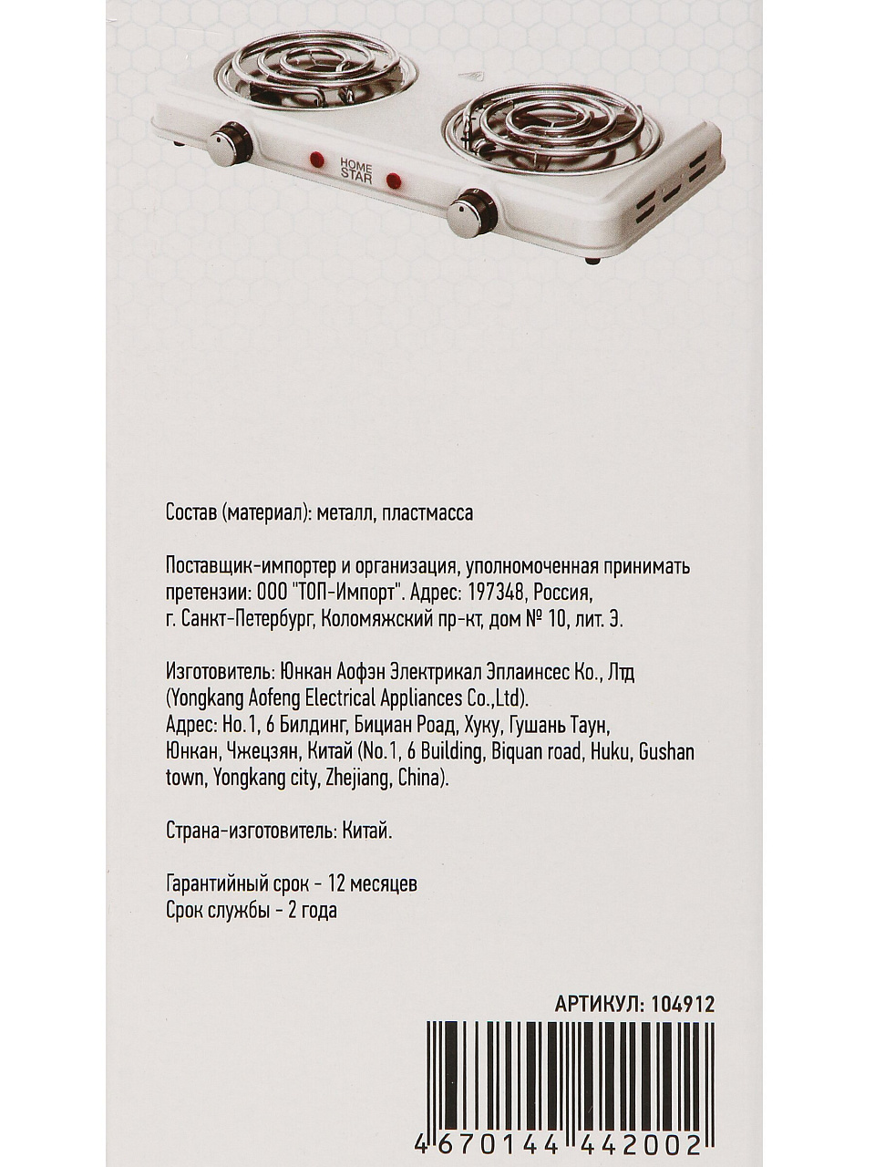 Вы можете приобрести «Плита электрическая Homestar, HS-1109, 2000 Вт, 2 конфорки, спираль, эмаль, механическая, переключатель поворотный, белая» и другие товары в нашем интернет-магазине в Воронеже по низким ценам и с бесплатным самовывозом.