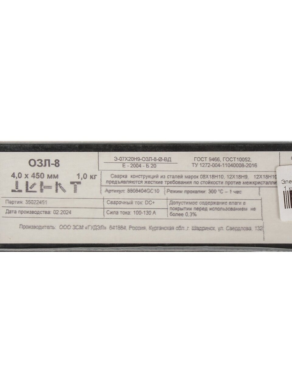 Электроды Goodel ОЗЛ-8 — надежный выбор для профессиональной и бытовой сварки нержавеющей стали. Продукт идеально подходит для создания прочных и долговечных соединений в ответственных узлах конструкций из коррозионностойких, хромоникелевых сталей марок 08Х18Н10, 08Х18Н10Т, 0818Н12Б и им подобных. Благодаря диаметру 4 мм и длине 450 мм обеспечивается стабильная дуга и качественный сварной шов, что особенно важно при работе с нержавеющими материалами. Электроды предназначены для ручной дуговой сварки, что делает их отличным решением как для опытных мастеров, так и для домашних мастеров, заботящихся о безопасности и долговечности сварных соединений.