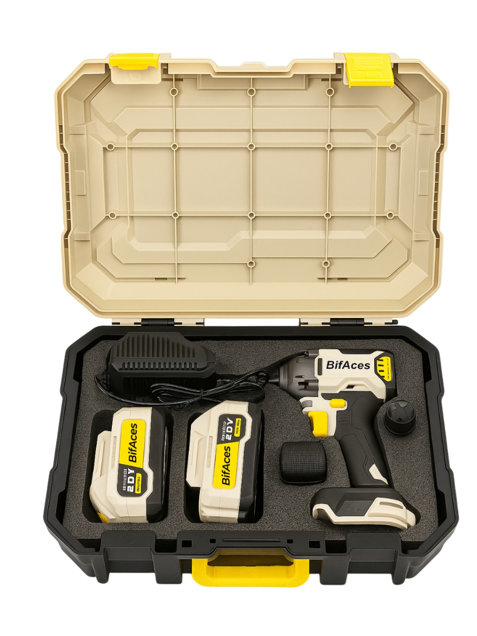 Закажите аккумуляторный гайковерт BifAces с двумя АКБ и кейсом прямо сейчас — получите гарантию 12 месяцев и бесплатную доставку. Оцените удобство, мощность и надежность, которые отмечают опытные мастера!