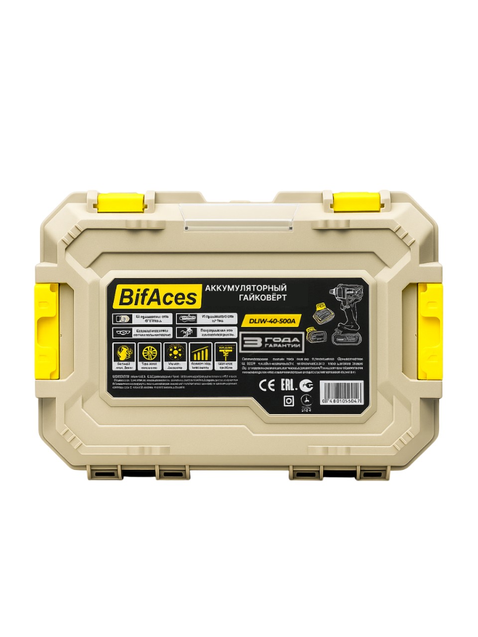 Аккумуляторный гайковерт BifAces DLIW-40-500A 20В — максимальный крутящий момент 500 Н·м, 2 Li-ion АКБ в кейсе. Решение для быстрой сборки и ремонта без лишних усилий.