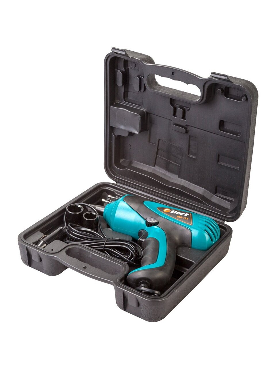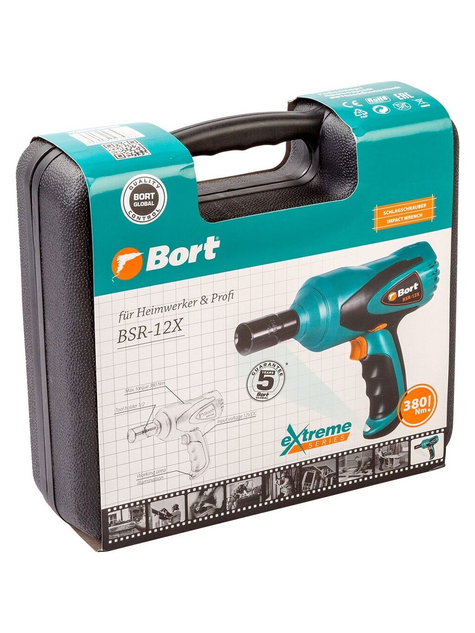 Гайковерт BSR-12Х – продвинутая и мощная модель по сравнению с двумя другими моделями линейки шуруповертов Bort, входит в серию eXtreme. Может использоваться в жестких условиях, благодаря усовершенствованным технологиям производства и комплектующим. Отличный помощник при откручивании или закручивании болтов или гаек. Высокий крутящий момент - 380 Н*м и 3400 об/мин дают возможность в одночасье открутить заржавевшие гайки. С комфортом и в мгновение ока вы справитесь с любыми резьбовыми соединениями за счет эргономичной модели и необычной формы корпуса. Светодиодная подсветка рабочей зоны дает возможность использовать инструмент в темное время суток. Данную модель очень удобно брать с собой в дорогу, так как она работает от автомобильного прикуривателя. Прочный кейс превосходно оберегает гайковерт при передвижении по любым дорогам. В комплект входит: набор из двух насадок и набор из двух предохранителей.