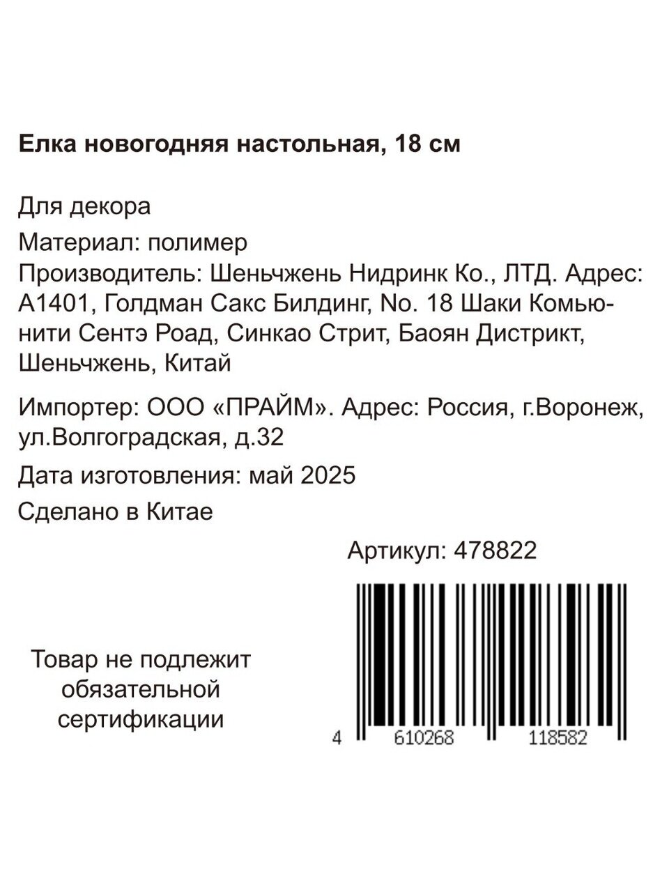 Добавьте в корзину настольную елку 18 см — получите быструю доставку и уверенность в качестве. Подарите уют и праздничное настроение себе и близким!
