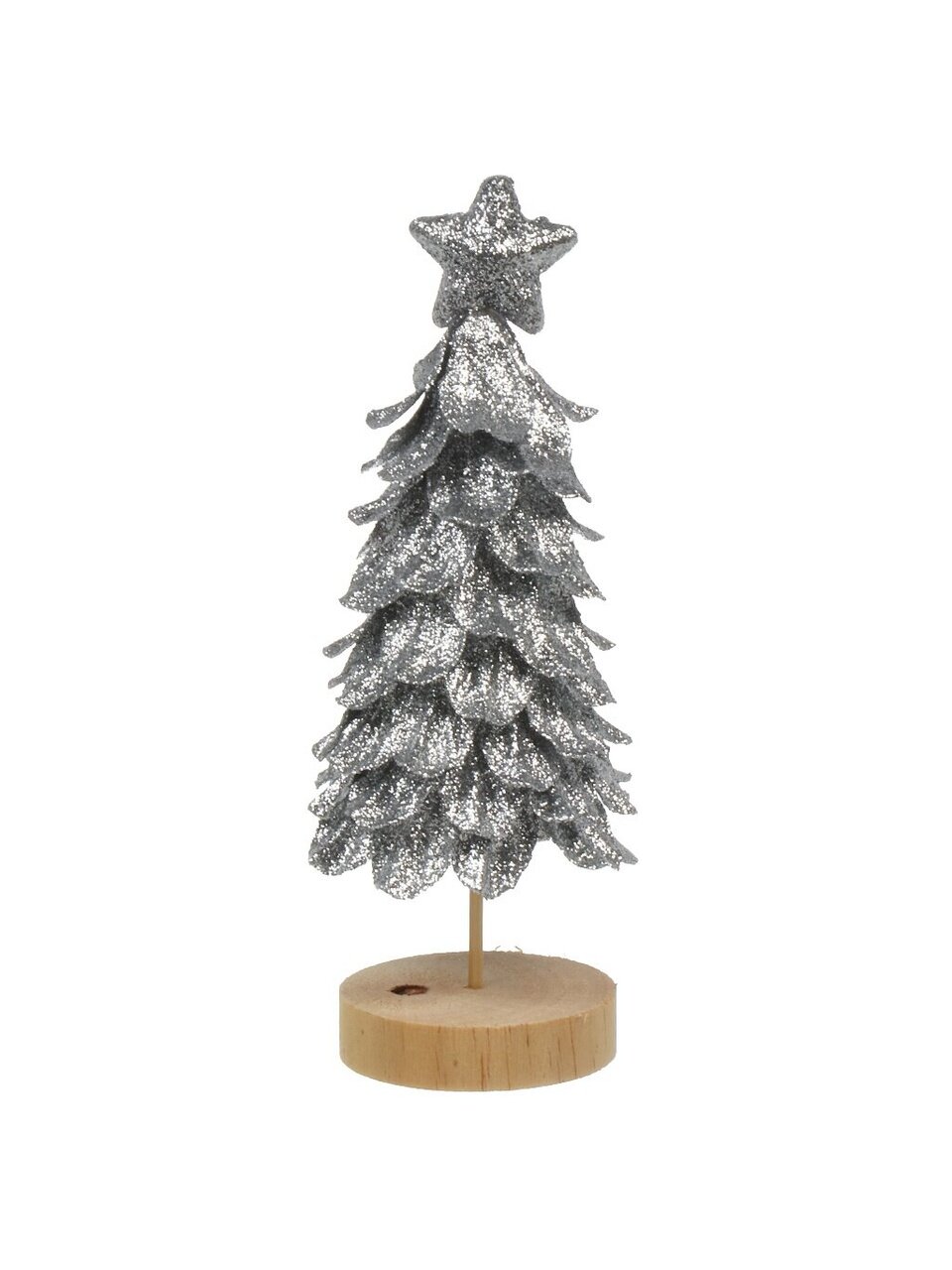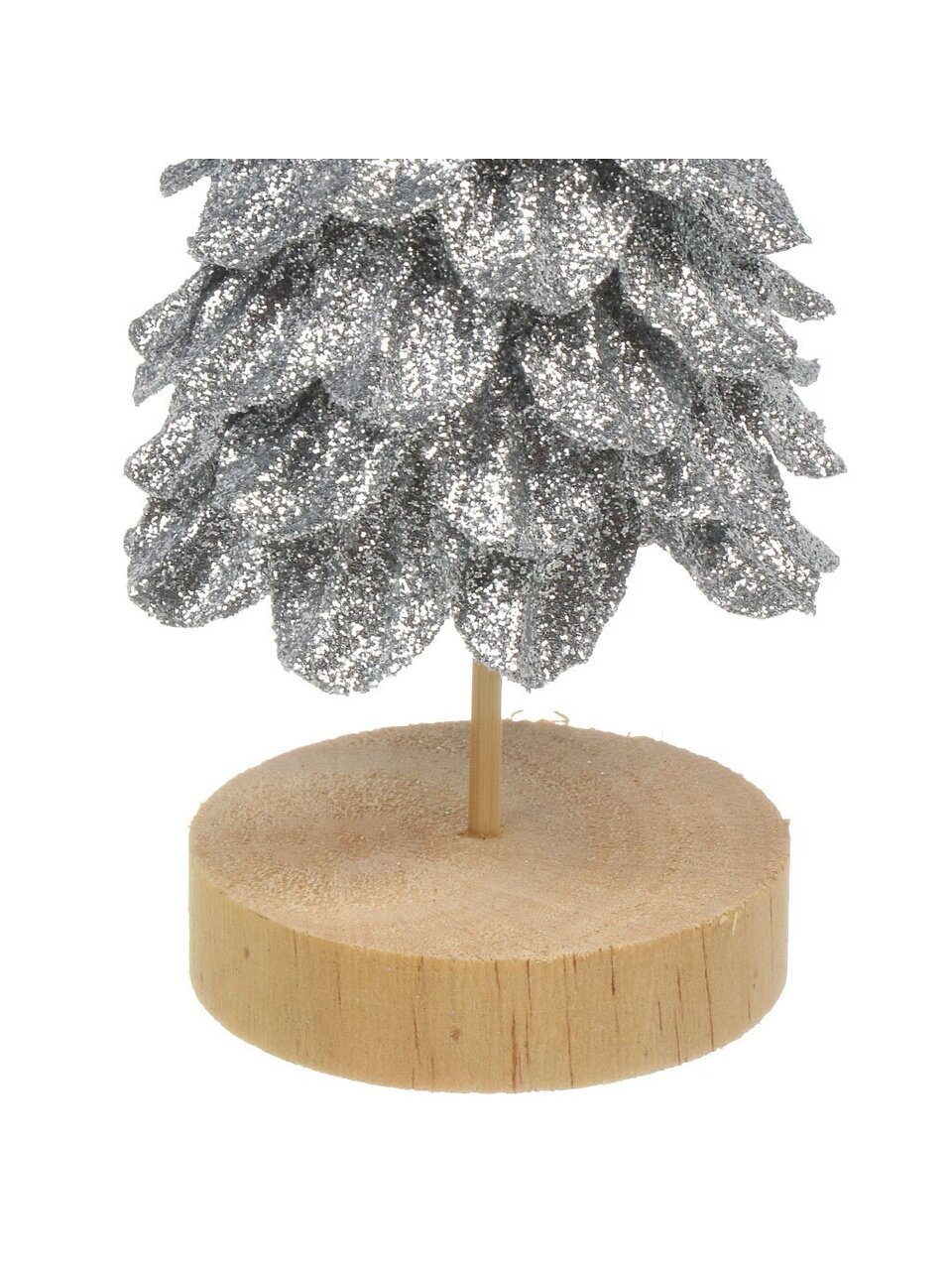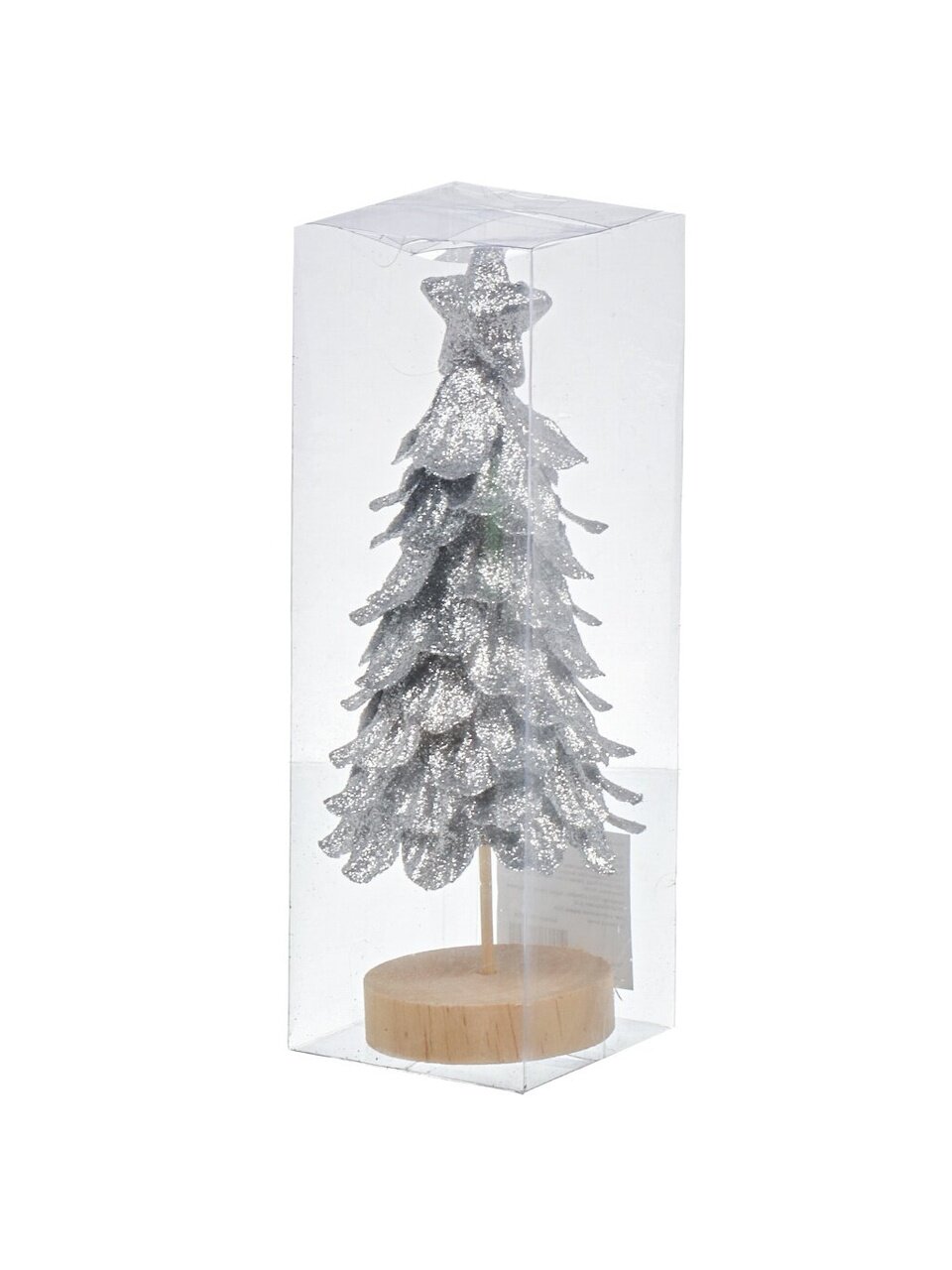 Елка новогодняя настольная 18 см серебро — компактный праздничный акцент для дома, офиса или подарка. Прочный полимер, натуральная деревянная подставка, универсальный стиль.