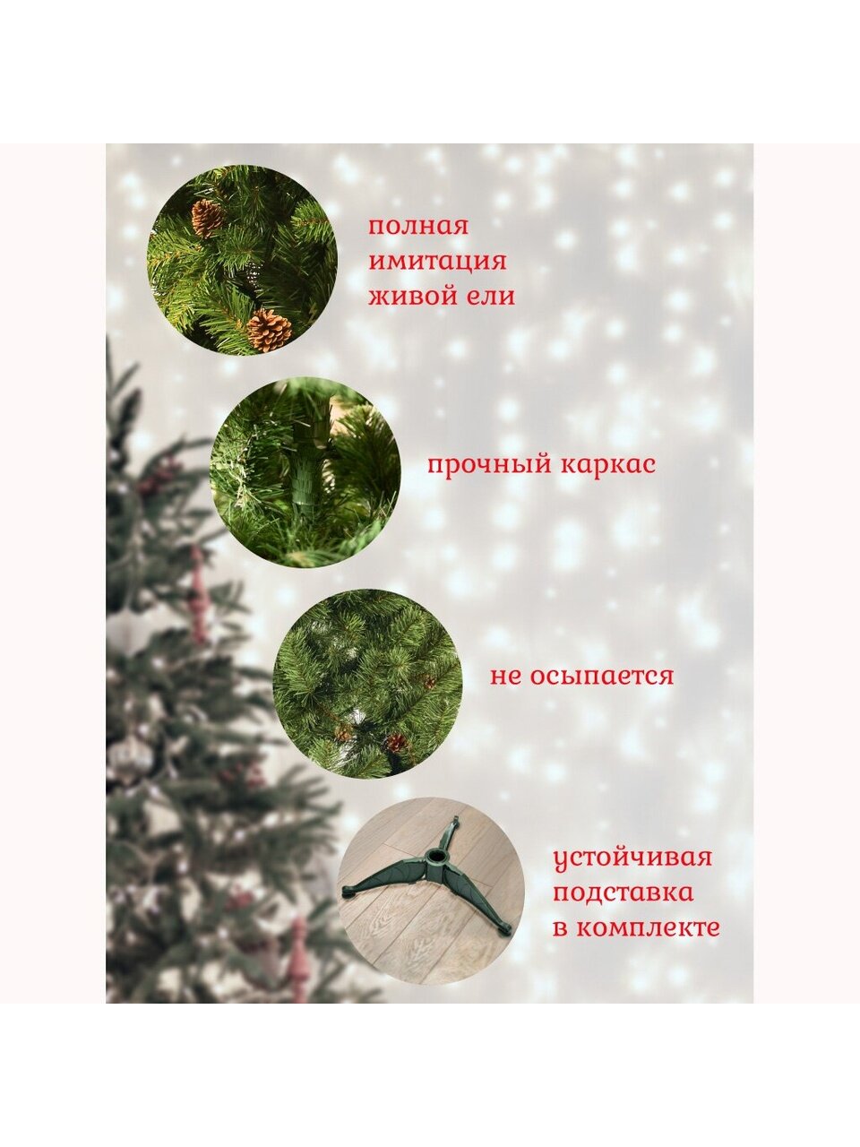 Густая крона ели с классическим силуэтом придает особый шарм, осталось добавить небольшое количество украшений и гирлянду. Хвоя выполнена из мягкого материала, она приятна на ощупь и абсолютно безопасна в использовании.