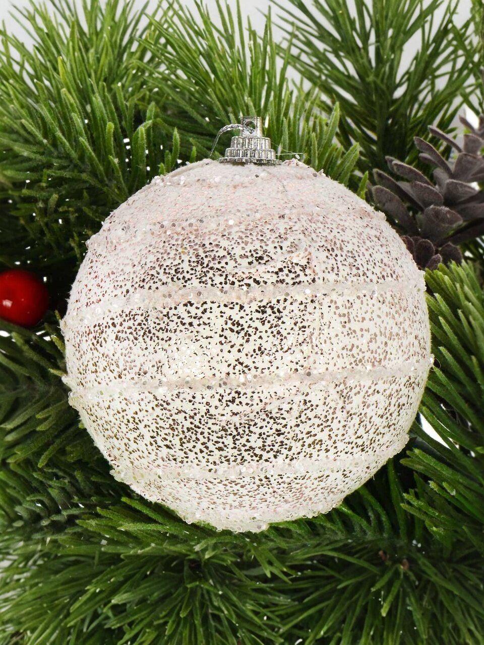 - Практичные параметры: диаметр 8 см, небьющийся пластик — оптимально для семей с детьми, животных, уличных и домашних елок