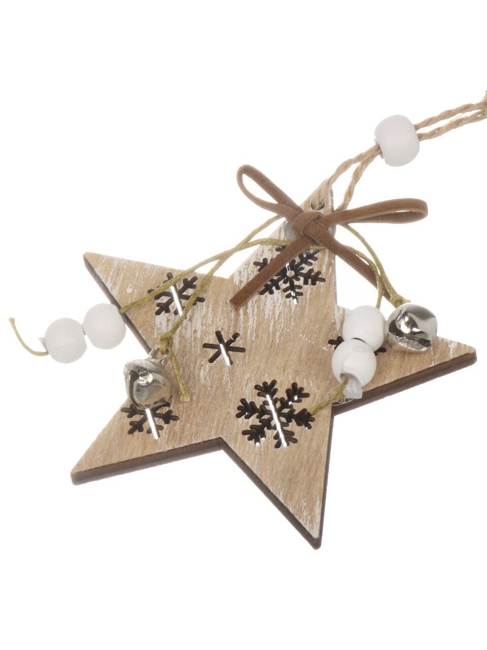 Елочное украшение «Звезда» из МДФ 9x7 см — безопасный декор для дома и улицы, экологичный выбор для стильного Нового года без лишних затрат.