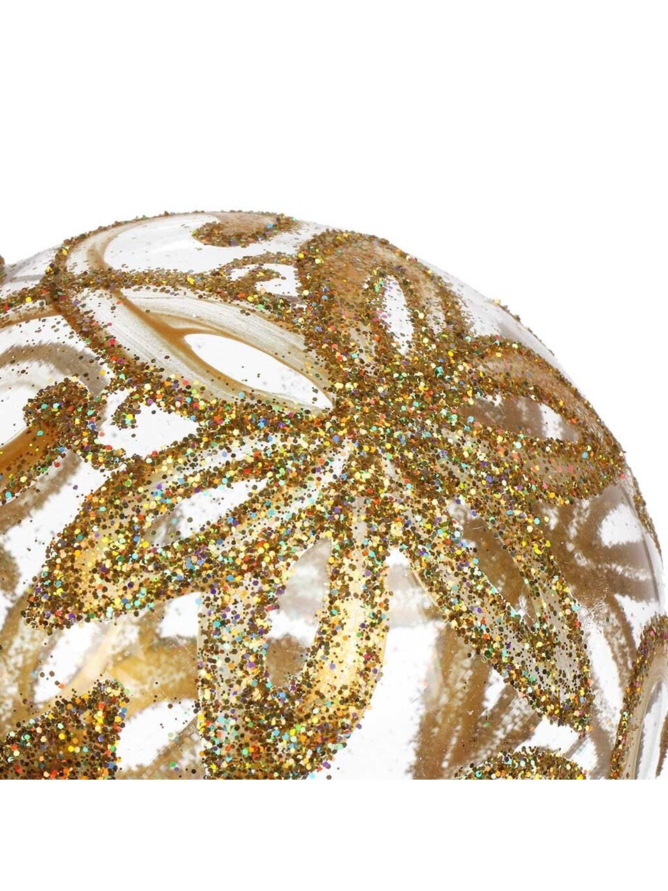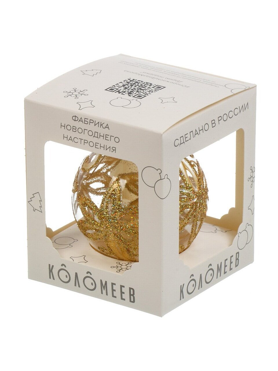 Елочный шар «Золотой цветок», 8 см — эффектное украшение для стильной елки или эксклюзивный подарок: стекло, блестки, премиальная упаковка, доставка по России.