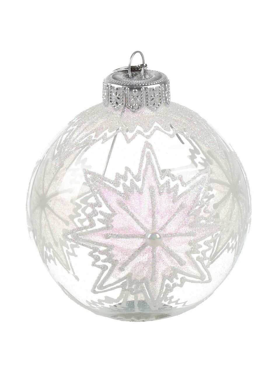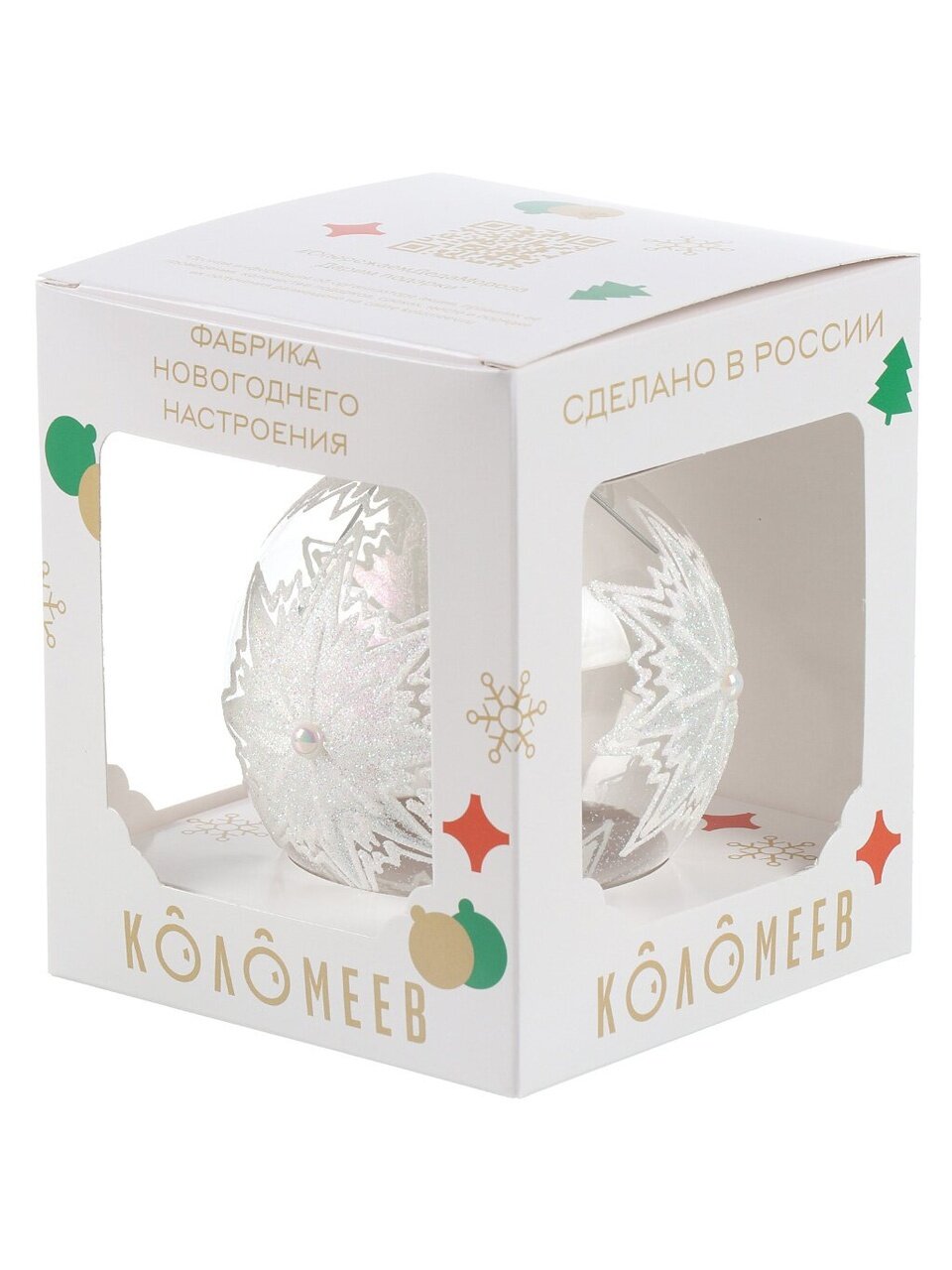 Елочный шар "Снежинка снежная" 8,5 см — эффектное украшение из стекла в подарочной упаковке: добавьте блеска и уюта вашему празднику или выберите стильный подарок.