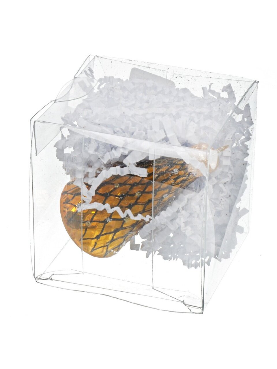 Украшение выполнено из прочного стекла с ручной росписью, высота 7 см, крепится на подвеске. Поставляется в индивидуальной коробке.