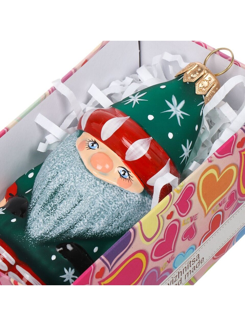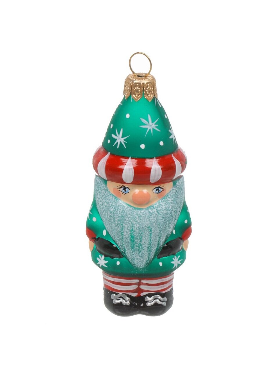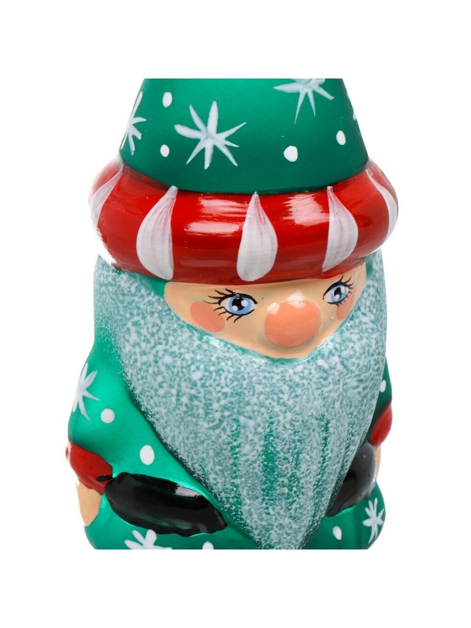 Гномик выполнен из стекла, украшен вручную, отличается долговечностью, эксклюзивностью и эстетикой — каждый экземпляр уникален, не выцветает и сохраняет внешний вид на долгие годы.